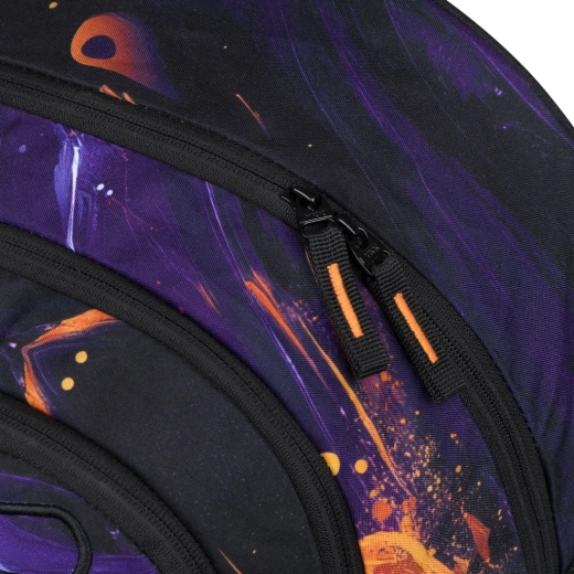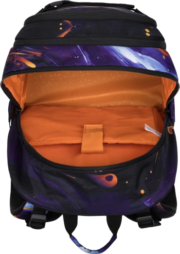 Das Innere besteht aus drei separat verschließbaren Fächern mit praktischem Organizer sowie einer gepolsterten Tasche für ein 15"-Notebook oder Tablet. Zuverlässige YKK-Reißverschlüsse gewährleisten ein reibungsloses Öffnen, während Riemen an der Vorderseite des Rucksacks die Befestigung eines Skateboards oder einer Jacke ermöglichen. Seitentaschen aus robustem, designabgestimmtem Material eignen sich ideal für eine Trinkflasche. Ein stylischer Anhänger ist inklusive, außerdem lässt sich der Rucksack mit Federmäppchen und Beutel im gleichen Design kombinieren.