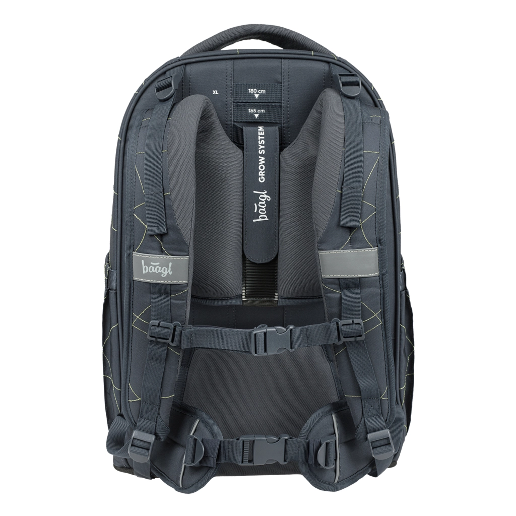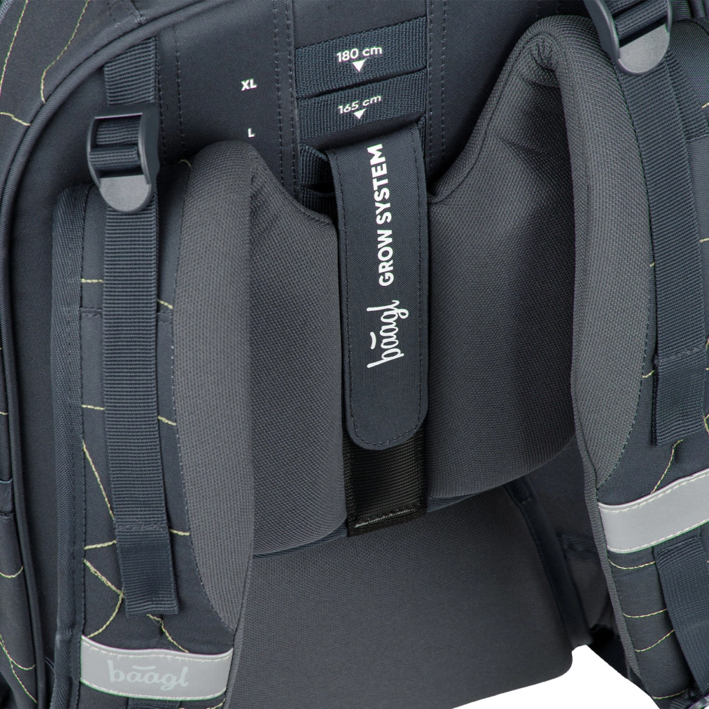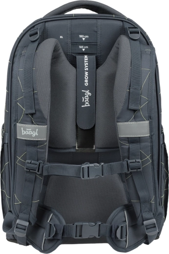 Der BAAGL Skate Max Wave GRS ist ein durchdachter Rucksack für Schüler und Studierende mit einer Körpergröße von 135–185 cm. Dank des verstellbaren Rückensystems wächst er komfortabel in bis zu vier Größen mit. Die Konstruktion mit EVA-Verstärkung hält die Form ausgezeichnet, der abnehmbare Hüftgurt erhöht die Stabilität und ergonomisch geformte Träger mit feinem Mesh schonen den Nackenbereich.