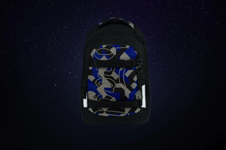 Die Federmappe ETUE bietet ein Hauptfach, eine doppelt aufklappbare Lasche, ein Innenfach und ein Fenster für den Stundenplan. Der Beutel mit robusten Kordeln wird bequem auf dem Rücken getragen, die Sporttasche verfügt über Griffe und einen Schulterriemen und die Gürteltasche ermöglicht das sichere, freihändige Tragen von Kleinigkeiten. Alles wird durch ein modernes geometrisches Muster und hochwertige Verarbeitung mit Fokus auf Nachhaltigkeit vereint – das Set erfüllt die Anforderungen des GRS und wurde von ITC/Zlín und QIMA getestet.