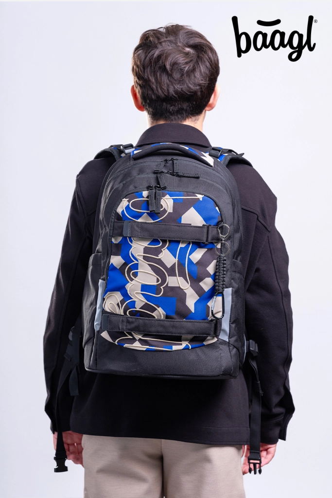 Das Schulset BAAGL Skate Max Variety ist für Kinder ab ca. der 3. Klasse bis hin zu Studenten konzipiert. Das Highlight ist ein kompakter Rucksack aus recyceltem, wasserabweisendem Material mit verstellbarem Rückensystem für eine Körpergröße von 135–185 cm. EVA-Verstärkungen halten die Form, der abnehmbare Hüftgurt entlastet den Rücken und zahlreiche reflektierende Elemente erhöhen die Sichtbarkeit. Die dreigeteilte Aufteilung mit samtigem Laptopfach schützt Elektronik, Seitentaschen fassen Trinkflaschen und die YKK-Zweiwege-Reißverschlüsse ermöglichen einen leichten Zugriff.