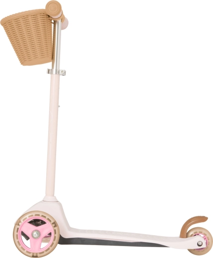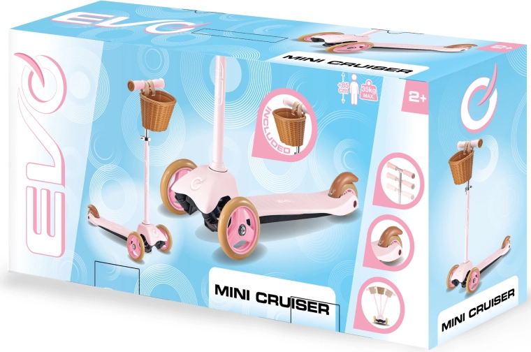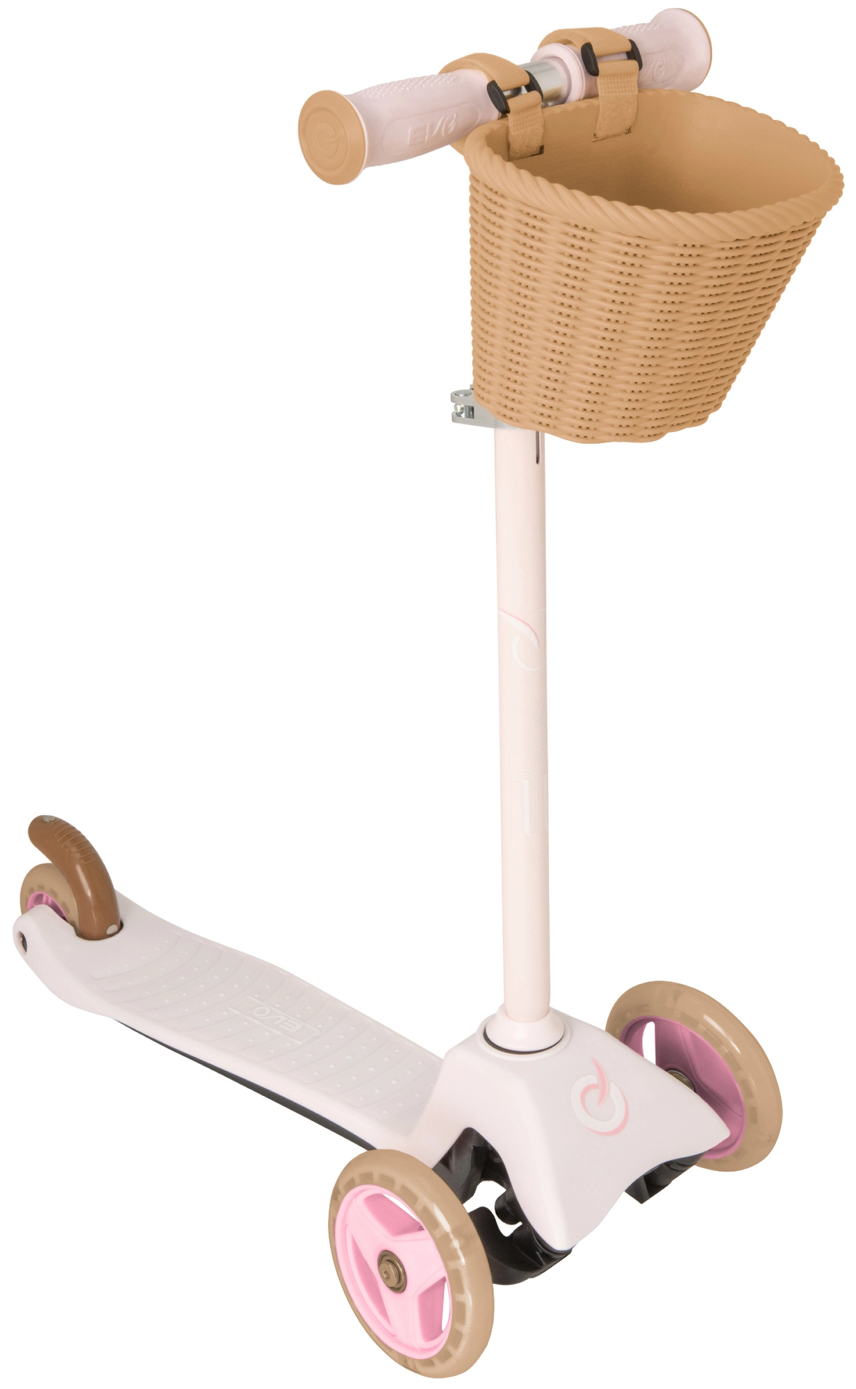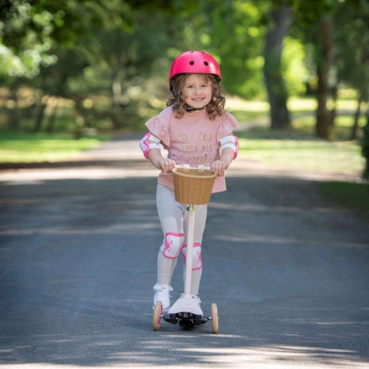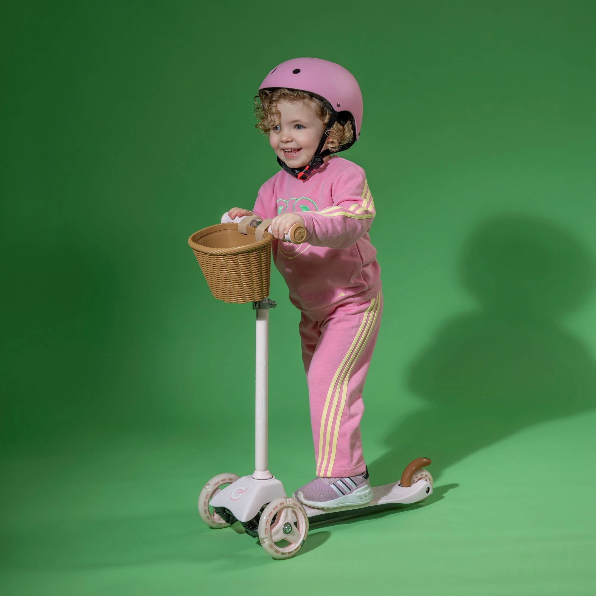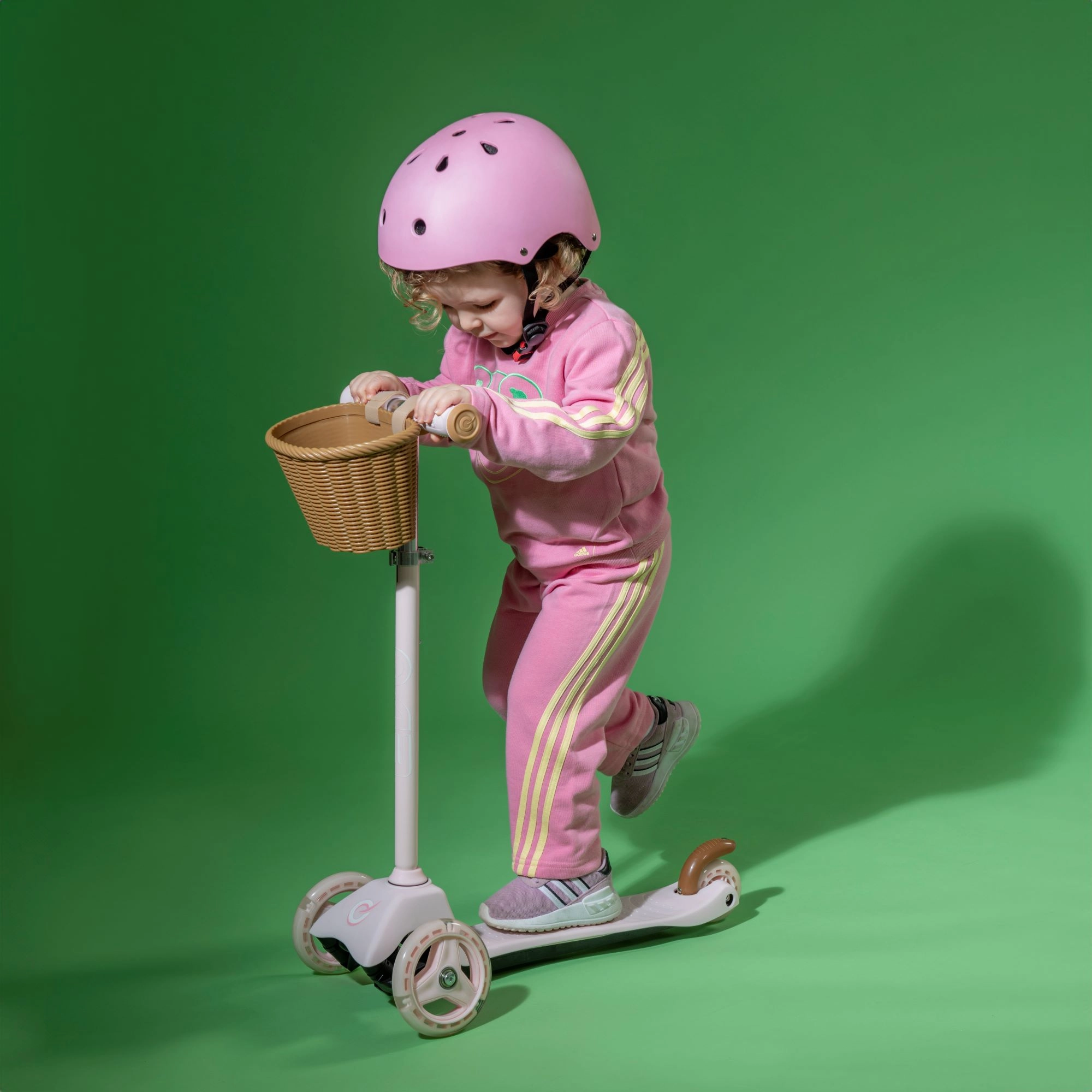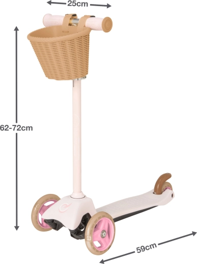 Der praktische abnehmbare Korb am Lenker erlaubt es, Lieblingskleinigkeiten überallhin mitzunehmen. Die Lenkerhöhe 62–72 cm ist einstellbar, und die leichte Konstruktion erleichtert Handhabung und Transport. Dank der attraktiven rosa Farbe ist der Roller bei Kindern schnell beliebt, während Eltern die durchdachten Sicherheitsdetails schätzen.