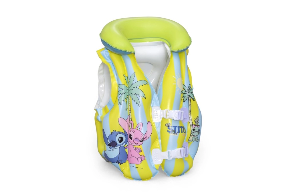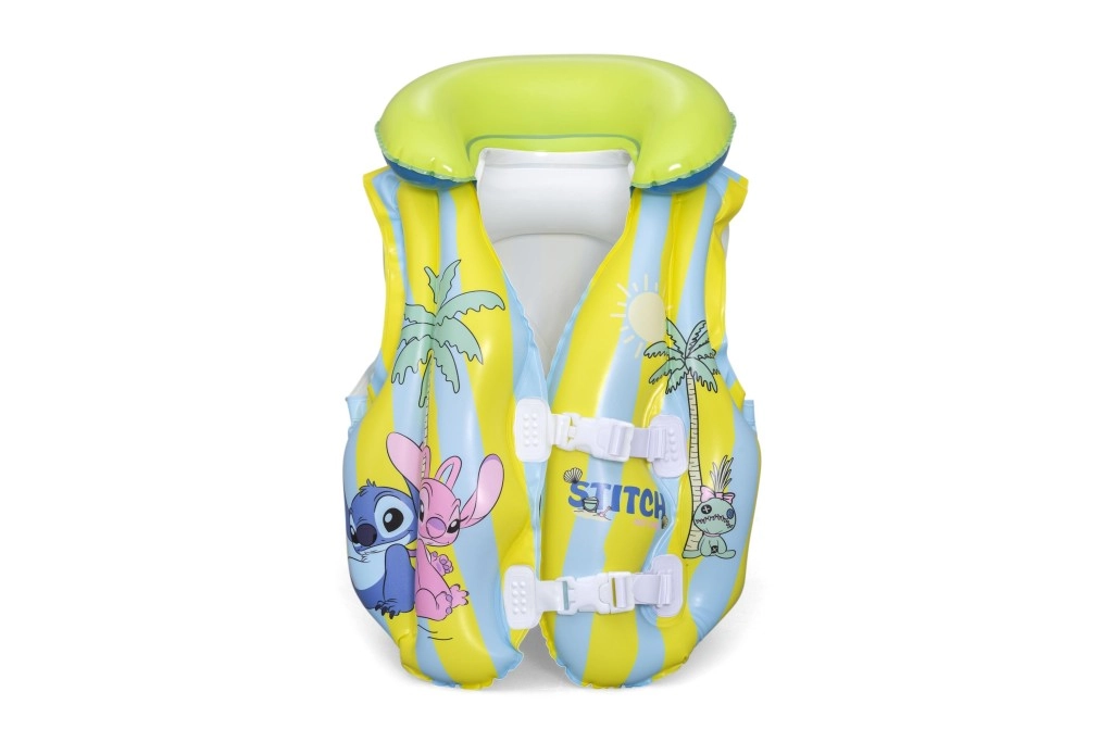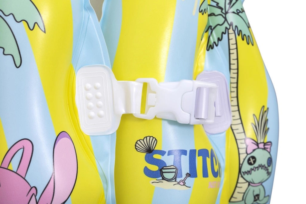 Diese aufblasbare Kinderweste mit dem beliebten STITCH-Motiv hilft kleinen Schwimmern, sich im Wasser sicherer zu fühlen. Dank mehrerer aufblasbarer Kammern, des weichen Kragens und der verstellbaren Schnallen passt sie sich leicht dem Körper an und gewährleistet Stabilität im Pool und auf ruhigen Gewässern. Pastellgelbe und hellblaue Streifen mit verspielten Prints erhöhen die Sichtbarkeit und sorgen für einen fröhlichen Look.