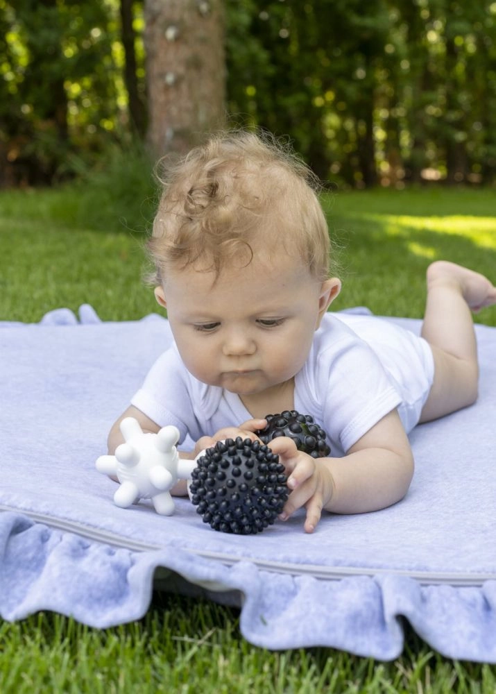 Ideal für sanfte Massage von Handflächen und Fußsohlen, für erste Spiele auf der Krabbelmatte und als Ergänzung für den Montessori‑Korb. Dank der leichten und weichen Konstruktion eignen sich die Bälle für den täglichen Einsatz zu Hause und unterwegs.