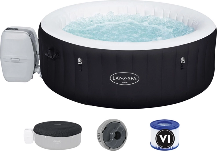 Der Whirlpool ist ideal für Terrasse, Garten und Innenräume – es genügt ein ebener Untergrund. Die praktische isolierende Abdeckplane mit Schnallen hilft, die Temperatur zu halten und schützt das Wasser vor Verunreinigungen. Im Lieferumfang enthalten sind außerdem ein ChemConnect‑Spender für die einfache Wasserpflege und eine Filterkartusche.