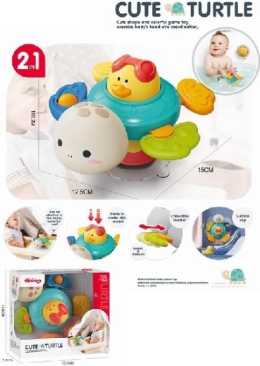 Die niedliche sensorische Schildkröte mit drehbarer Ente begeistert selbst die kleinsten Babys. Sie fördert die Entwicklung der Sinne, die Feinmotorik und die Koordinationsfähigkeiten dank der sicheren Drehfunktion und der angenehmen Größe für kleine Kinderhände.