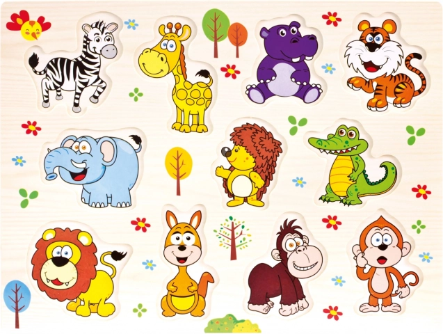 Dieses große Holzpuzzle mit Safaritieren begeistert kleine Entdecker. Die farbigen Einsteckteile liegen gut in der Hand und helfen Kindern, motorische Fähigkeiten sowie logisches Denken zu trainieren. Die stabile Holzplatte behält ihre Form und sorgt für ein bequemes Puzzeln.