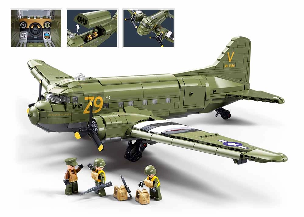 Dieser detailreiche Bausatz bildet das ikonische zweimotorige Transportflugzeug mit breitem Rumpf, ausgearbeiteten Flügeln und authentischen Elementen eines Militärflugzeugs originalgetreu nach. Dank öffnendem Cockpit und hinterem Laderaum lassen sich Luftlandeoperationen und realistische Spielszenarien leicht inszenieren. Drehbare Propeller und das funktionsfähige Fahrwerk verleihen dem Modell Dynamik und eine beeindruckende Präsenz im Regal wie auch beim Spielen.