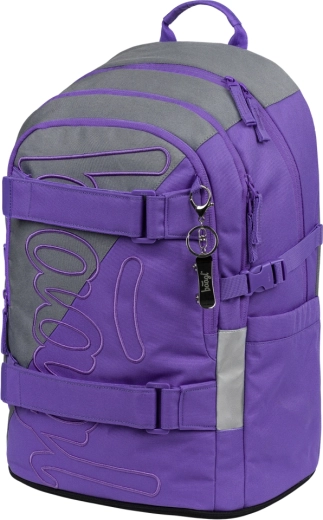 Drei separat verschließbare Fächer sorgen für eine übersichtliche Aufbewahrung der Schulsachen. Der Innenorganizer und das gepolsterte Fach für einen 15″ Laptop oder ein Tablet schützen die Elektronik, die Seitentaschen fassen Trinkflaschen. Vordere Kompressions-/Befestigungsriemen halten Skateboard oder Sweatshirt sicher fest.