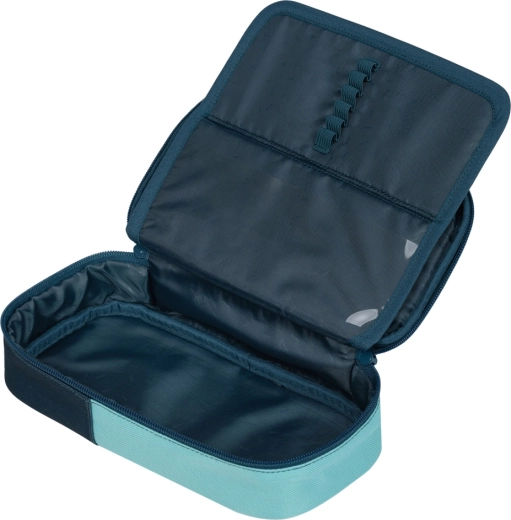Ergänzt wird das Set durch ein kompaktes Federmäppchen mit doppelter Klappe und Sichtfenster für den Stundenplan, eine faltbare Sporttasche mit 22 l Volumen und nur 170 g Gewicht, eine praktische Gürteltasche für Kleinigkeiten sowie eine Laptop-Hülle zum Schutz Ihrer Technik. Alles im abgestimmten Petrol/Türkis-Design für einen einheitlichen Look.