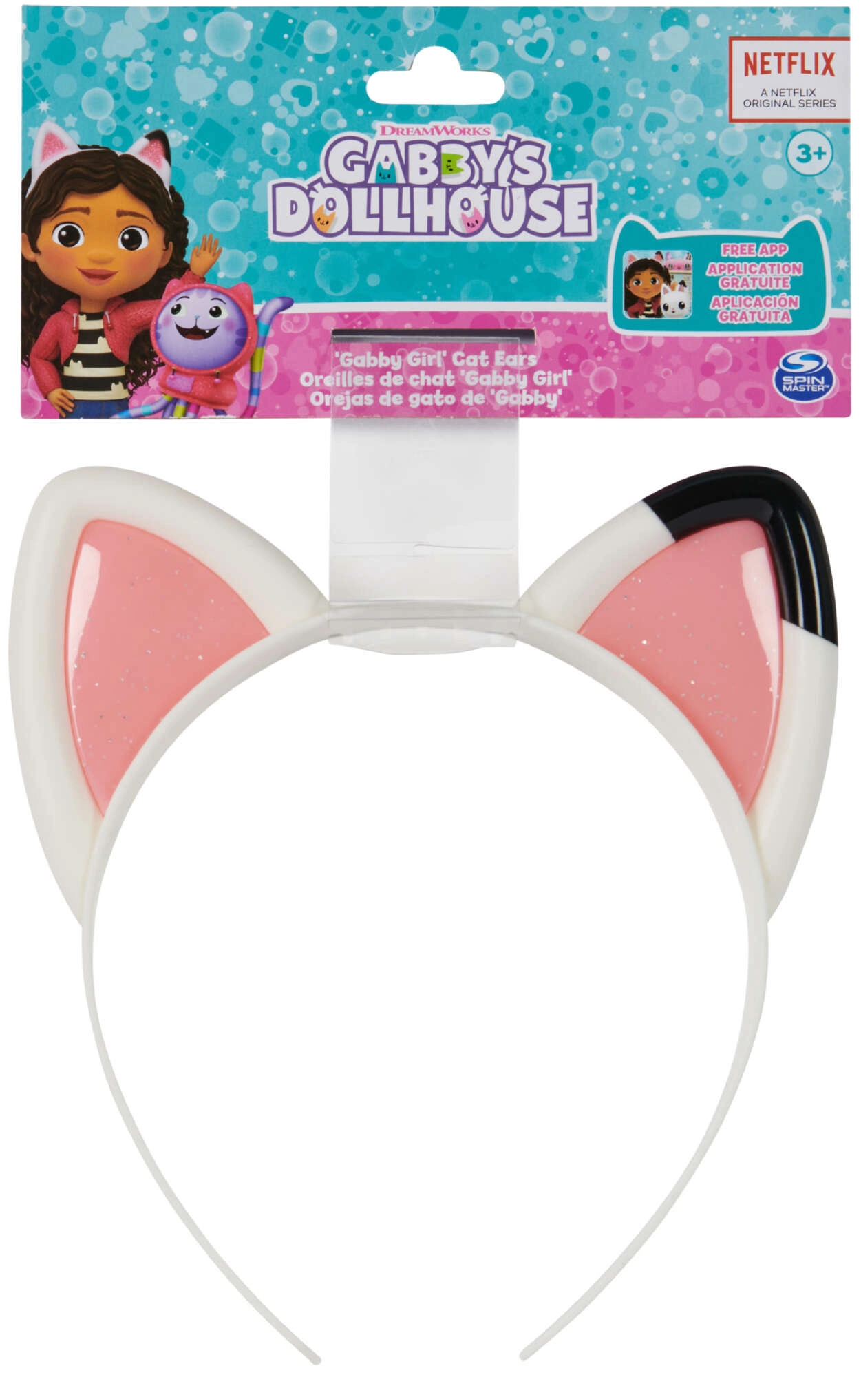 Tauche ein in die Fantasiewelt mit dem Stirnband mit Katzenohren aus der beliebten Serie GABBY’S DOLLHOUSE. Das weiße Kunststoff-Stirnband mit rosa glitzernden Details bildet die Ohren, die Gabby trägt, exakt nach und unterstützt kreatives Spiel, Kostüme und das tägliche Aufhübschen der Frisur.