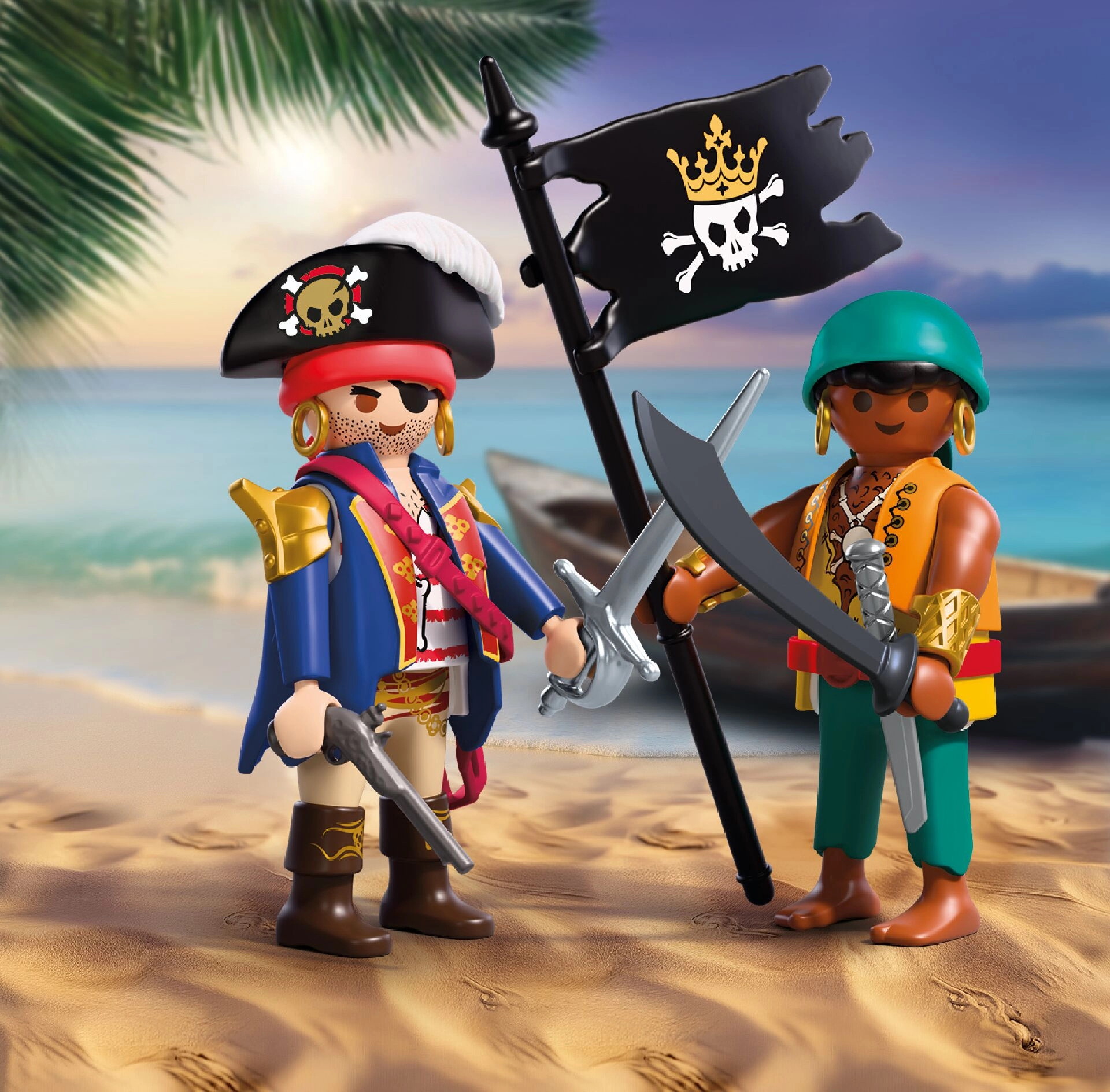 Dieses kompakte Set der Reihe Duo Pack bietet zwei Piratenfiguren (ca. 7,5 cm), die für waghalsige Missionen bereit sind. Dank der Ausrüstung wie Hut, Säbel, Pistole und Piratenflagge lassen sich actionreiche Kampfszenen und spannende Schatzsuchen leicht nachspielen.
