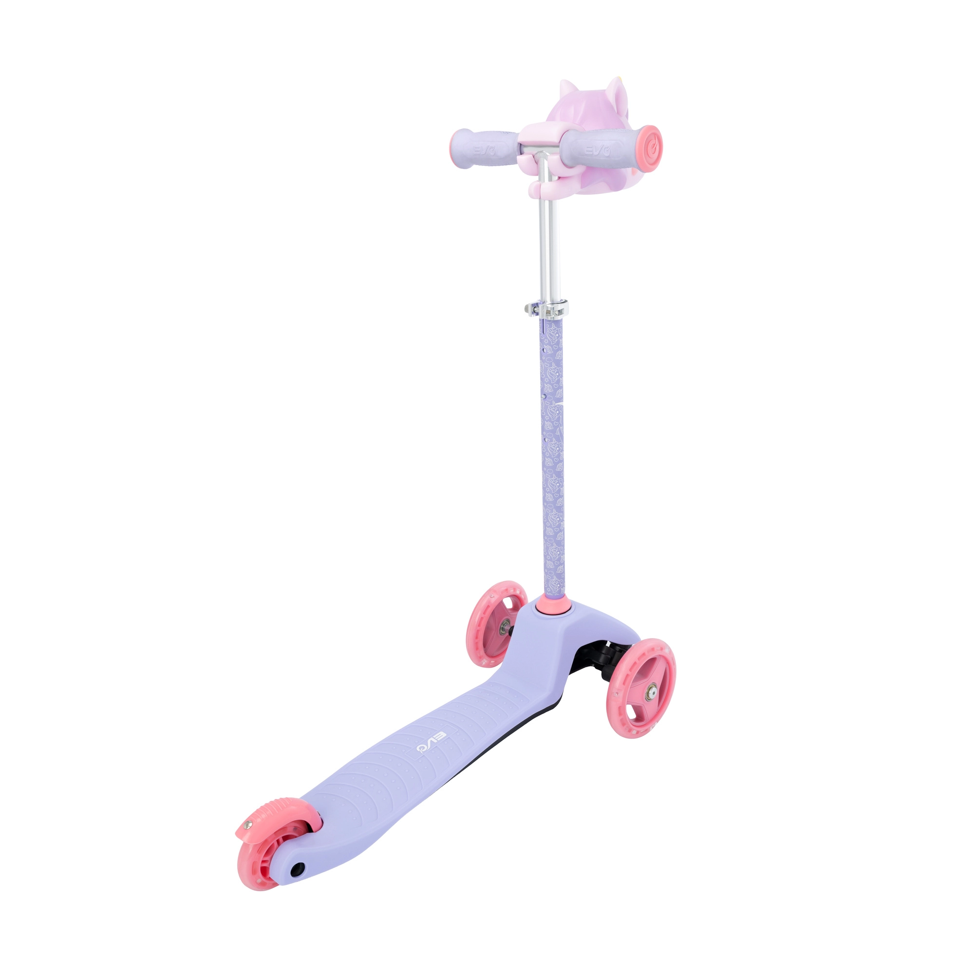 Der EVO Light Up Mini Cruiser ist die ideale Wahl für die ersten Rollerfahrten. Zwei größere Vorderräder und ein Hinterrad bieten hohe Stabilität, während die LED-Beleuchtung in den Vorderrädern jede Ausfahrt in eine unterhaltsame Show verwandelt. Höhenverstellbare T-Bar-Lenker passen Sie leicht an die Größe des Kindes an, die weichen TPR-Griffe rutschen nicht und liegen bequem in der Hand.