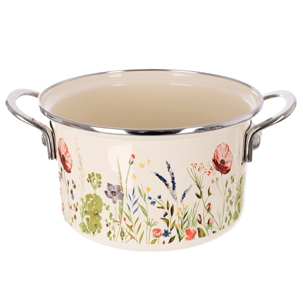 Hochwertige Emaille ist hygienisch, widerstandsfähig und auch für Allergiker geeignet. Der Edelstahlrand und die Metallgriffe erhöhen die Lebensdauer und die Sicherheit bei der Verwendung.