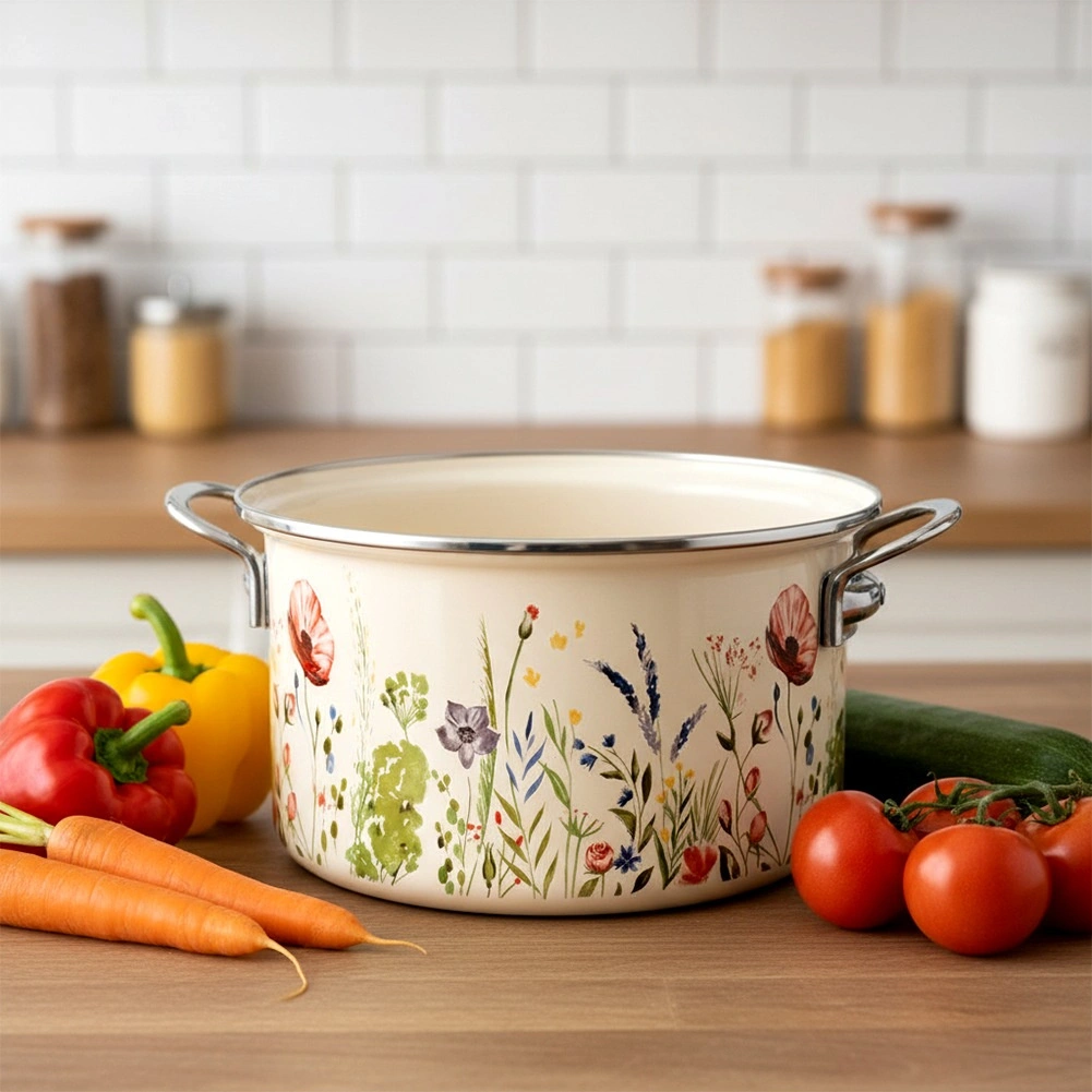 Dank der breiten Kompatibilität ist der Topf geeignet für Gas, Elektro, Glaskeramik, Halogen und Induktion und kann auch im Ofen verwendet werden. Nach dem Kochen können Sie ihn bedenkenlos in die Spülmaschine geben. Emaille ist hygienisch und gesundheitlich unbedenklich, nimmt keine Gerüche oder Geschmäcker an und ist auch für Allergiker sicher. Das Dekor kann leichte produktionsbedingte Unregelmäßigkeiten aufweisen (z. B. feine Wölbungen oder leicht asymmetrischen Druck), die die Funktion nicht beeinträchtigen und den traditionellen Charakter des Produkts betonen.