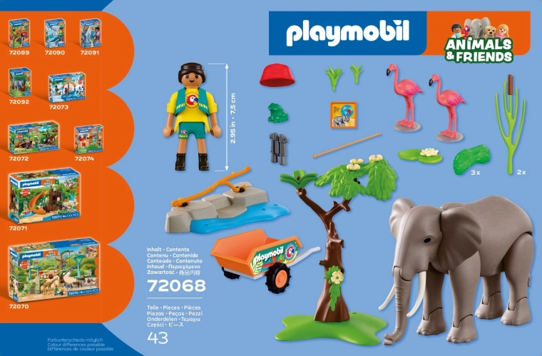 Der Elefant kann seine Gliedmaßen bewegen, Futter mit dem Rüssel anheben und mit der Umgebung interagieren, einschließlich des Umstoßens eines Baumes. Die Pflegerin kümmert sich um die Tiere, verteilt Futter und achtet auf ihr Wohlbefinden. Ebenfalls enthalten sind eine Wasserstelle, Pflanzen und ein kleines Tier, die dem Spiel Authentizität verleihen.