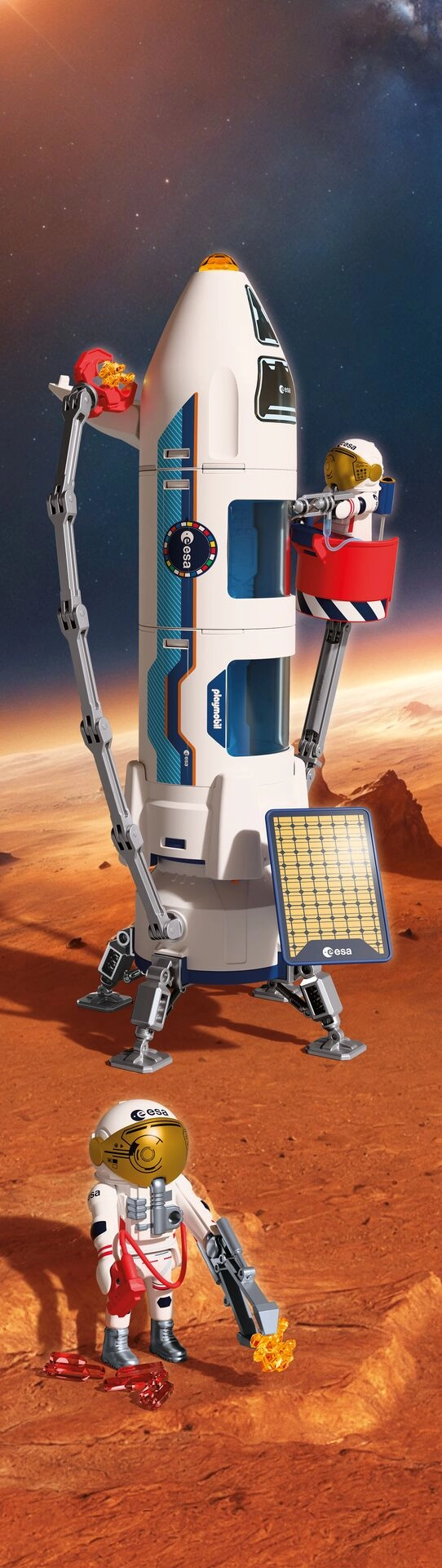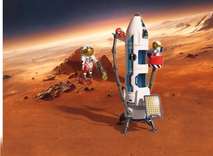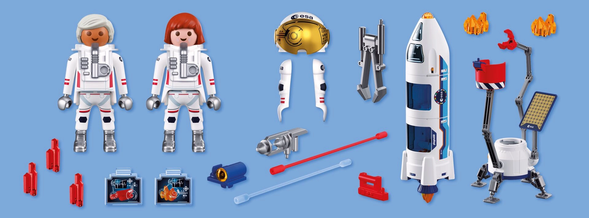 Das Set enthält 2 Astronautenfiguren mit Helmen, speziellen Protektoren und Werkzeugen (inklusive Bohrer und Zange), außerdem ein Panel mit Solarzellen, einen Servicekorb, einen robotischen Arm mit Greifer, eine Startplattform und Proben von Marsgestein. Ideal als Erweiterung der PLAYMOBIL-Welt oder als eigenständiges Set für kleine Forscher ab 4 Jahren.