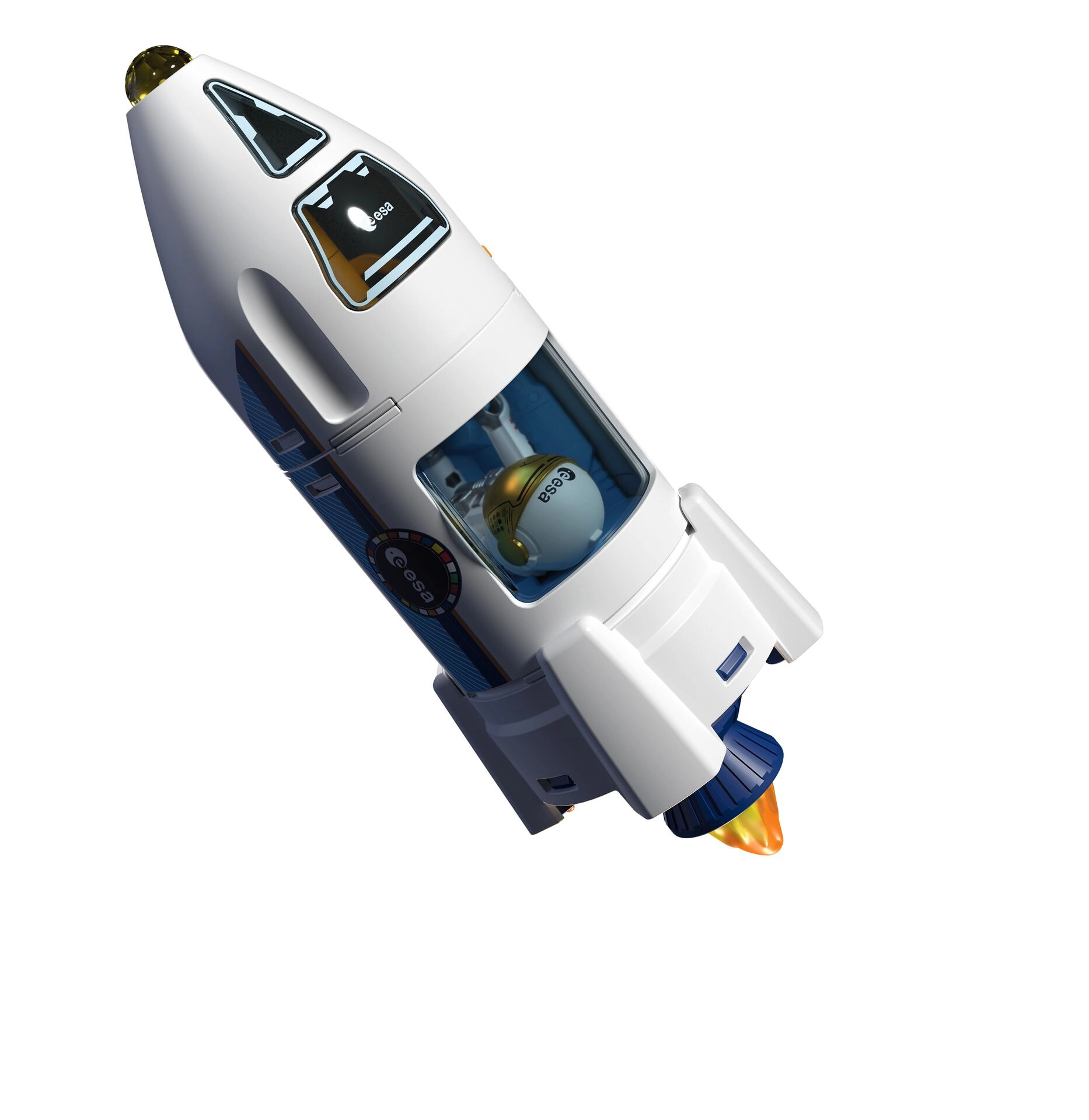 Der bewegliche Arm mit Greifer fasst Gesteine mühelos und legt sie in die Fächer der Rakete. Ideal für wissenschaftliche Missionen und das Trainieren der Feinmotorik.