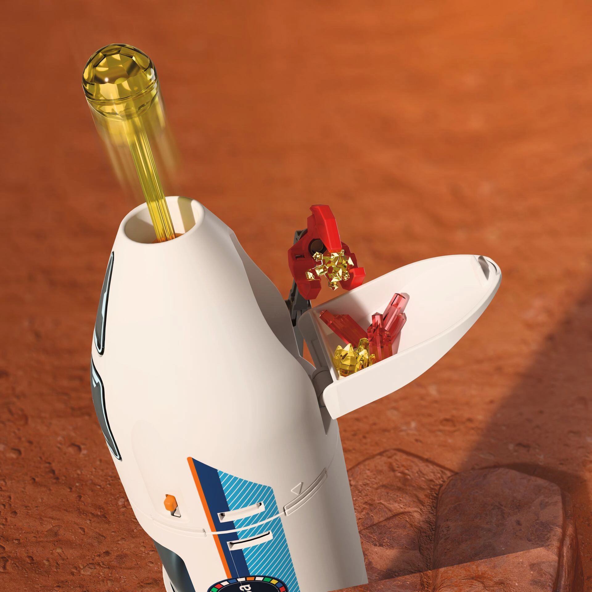Dieses detailreich gestaltete Weltraum-Set bietet ein authentisches Marsforschungserlebnis. Die modulare Konstruktion ermöglicht das Verkürzen und Verlängern der Rakete, das Andocken an die mobile Plattform und die Nutzung der Servicearme zur Wartung oder zum Umgang mit Proben. Dank transparenter Fenster und realistischer Elemente ist das Spiel maximal fesselnd.
