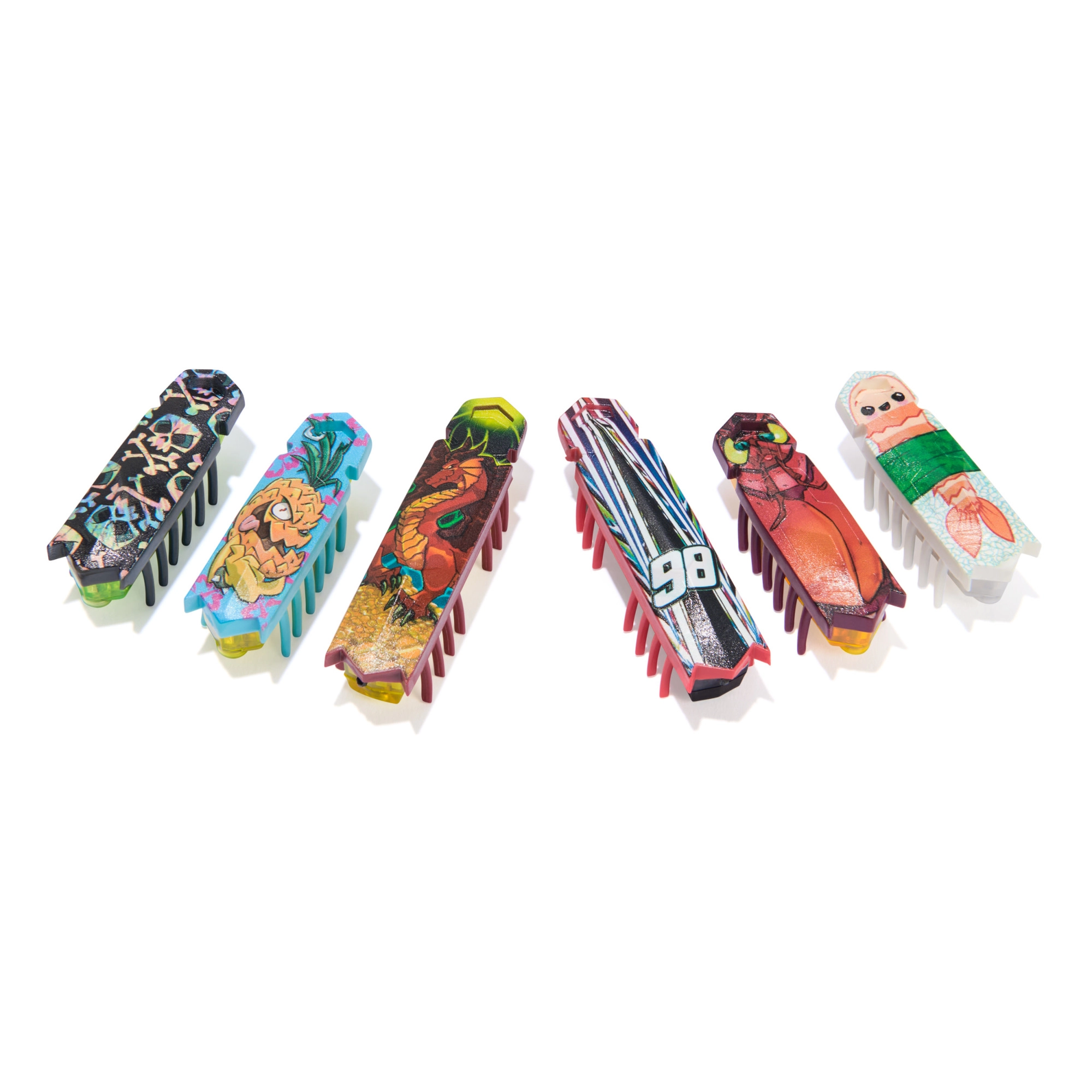 Originelle, vom Street‑Art inspirierten Grafiken begeistern kleine und große Sammler. Kompatibel mit HEXBUG Strecken und Hindernissen zum Bau eigener Arenen.