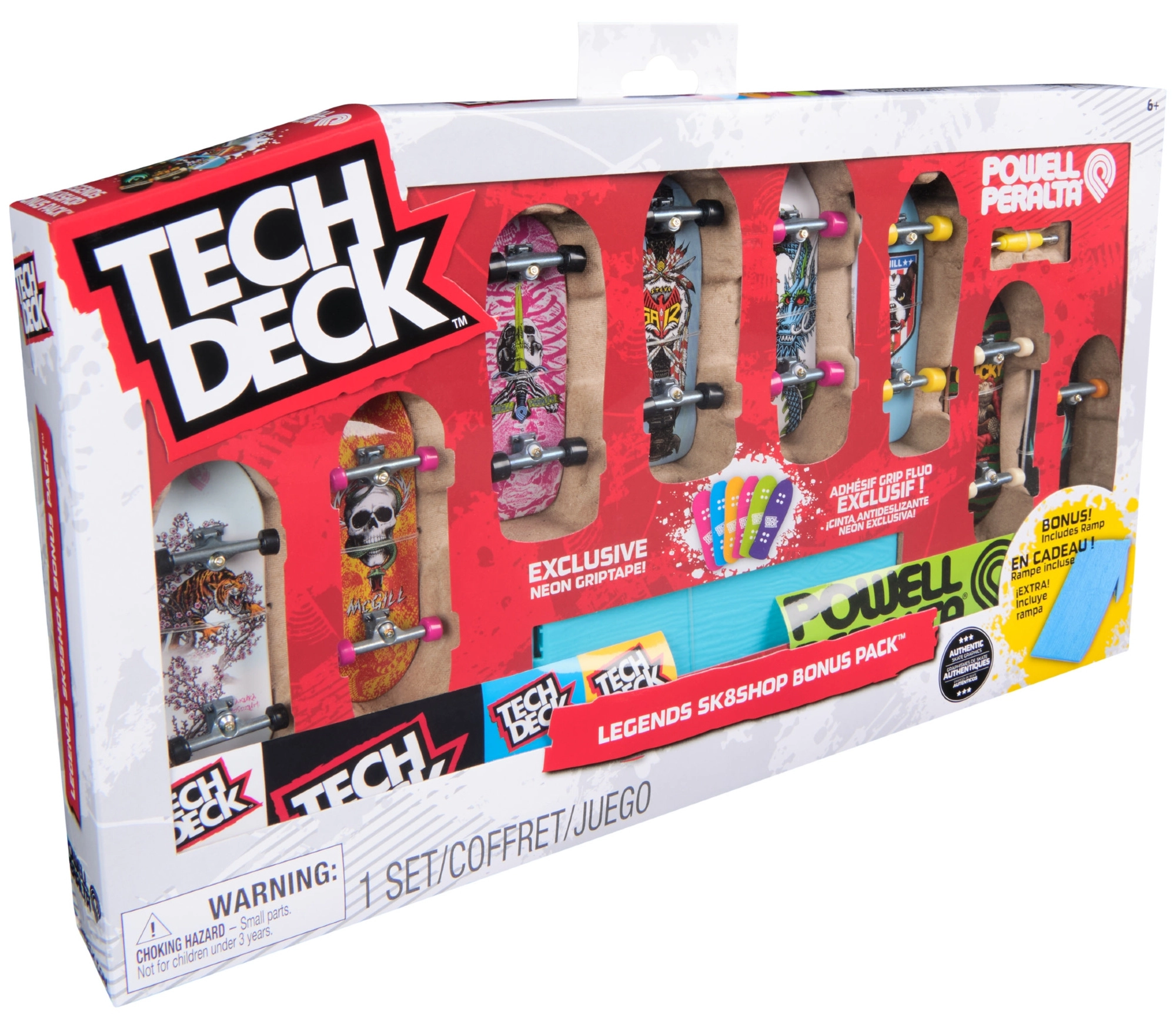 Entdecke die Welt des Fingerboardings mit der legendären Marke TECH DECK, die seit über 20 Jahren Fans weltweit inspiriert. Dieses exklusive Legends Sk8shop Bonus Pack bietet 8 fertig montierte Fingerboards mit farbenfrohen Designs und eine Neon-Rampe für Sprünge und Tricks.