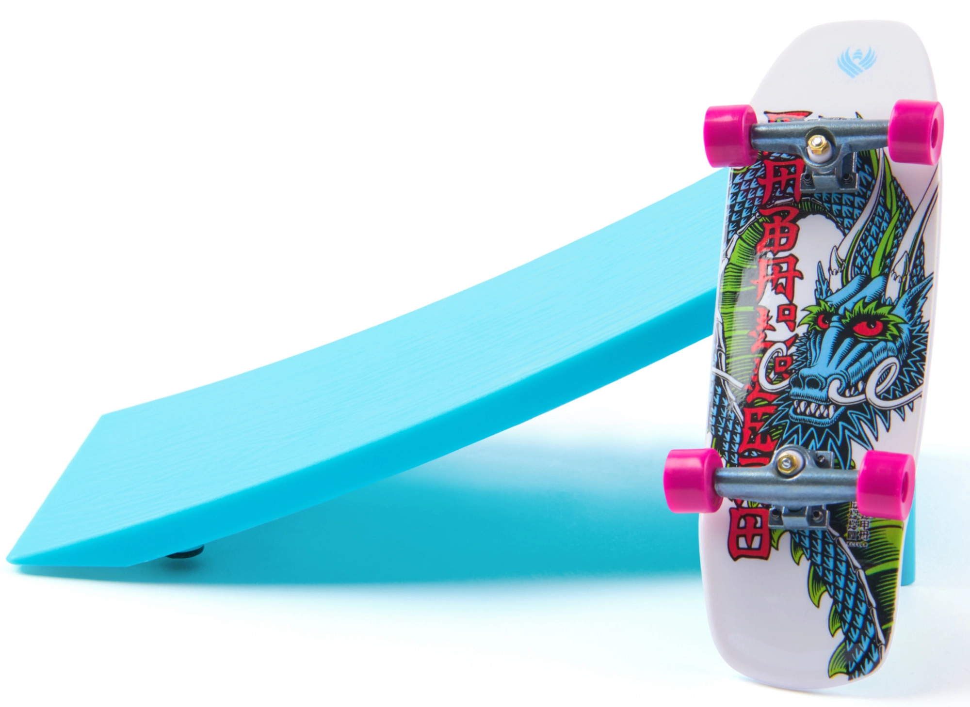 Die beiliegende Kunststofframpe mit strukturierter Oberfläche ist ideal für Sprünge, Drops und sanfte Landungen – hebe deine Fingertricks auf das nächste Level.