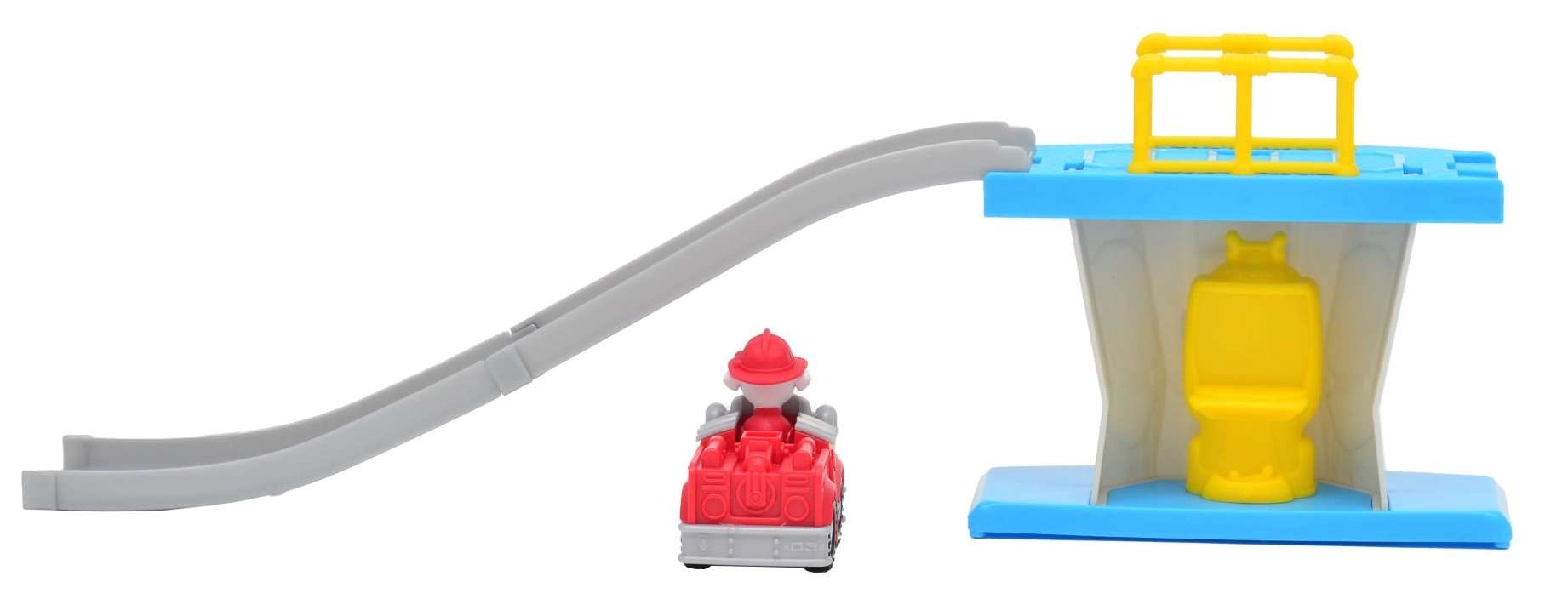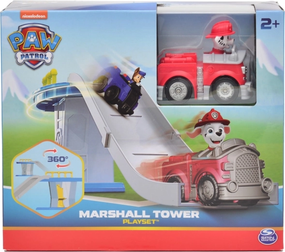 Der Turm mit Fahrbahn lässt Marshalls Fahrzeug sanft hinabgleiten – ideal für dynamische Rettungsszenarien und endlosen Spielspaß.