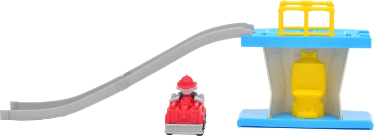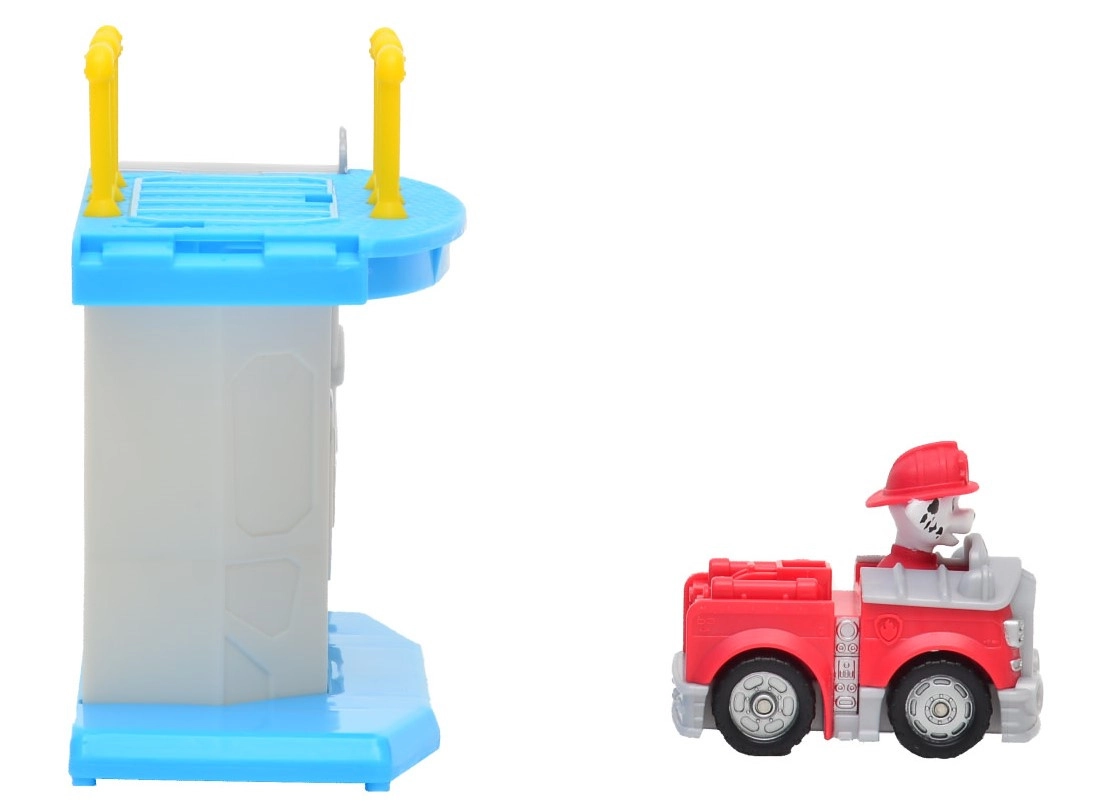 Dieses bunte Spielset, inspiriert von der beliebten Serie PAW PATROL, bringt Kindern täglichen Spielspaß. Der Turm mit Abfahrtsrampe lässt das Fahrzeug sanft hinunterrutschen und direkt zum Rettungseinsatz starten. Enthalten ist ein Mini-Feuerwehrauto Marshall mit fest integrierter Welpenfigur für einen schnellen Spieleinstieg.