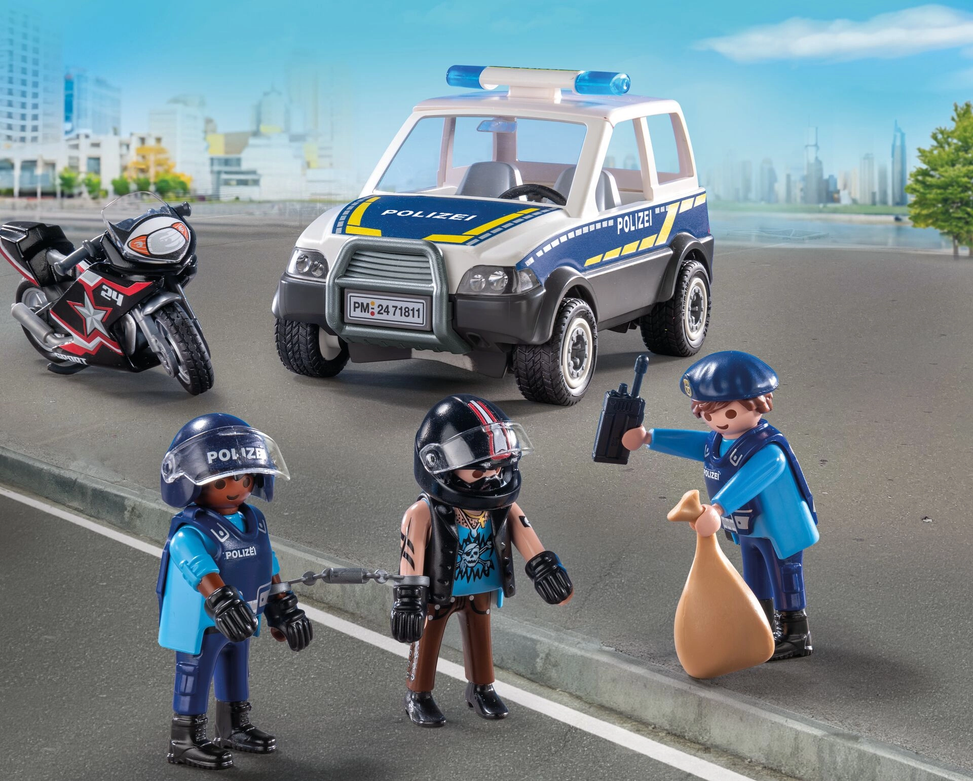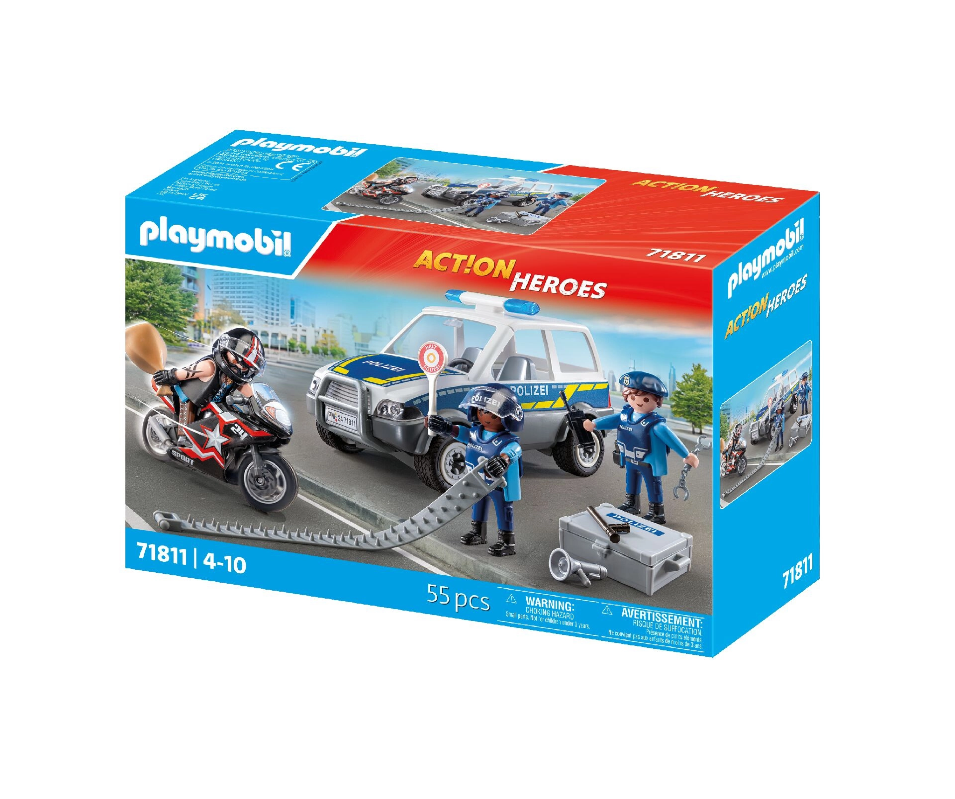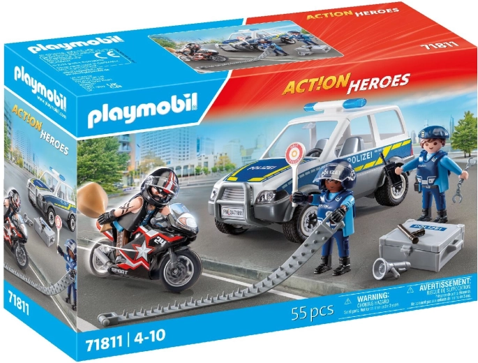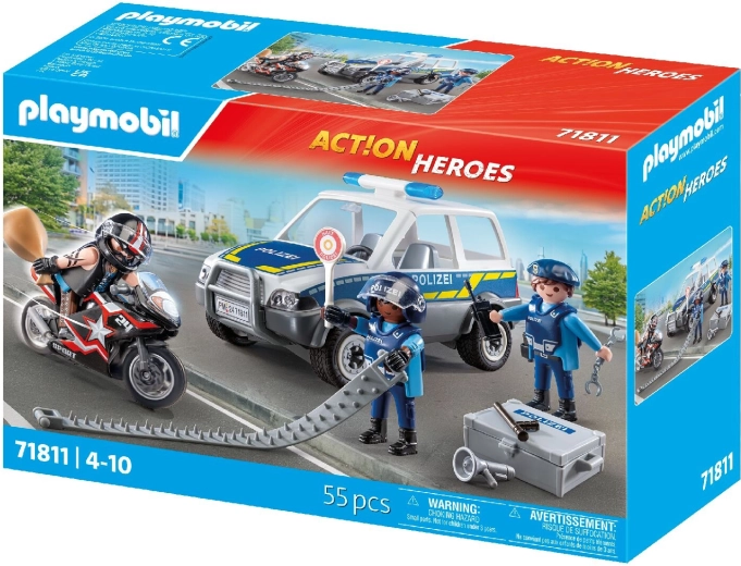 Erwecken Sie die kindliche Fantasie mit dem dynamischen Set PLAYMOBIL City Heroes – Polizeiverfolgung zum Leben. Ein mutiger Polizist nimmt die Verfolgung auf, um den auf dem Motorrad fliehenden Dieb zu fassen, während der Verbrecher in einem coolen Wagen entkommt. Realistische Fahrzeuge, präzise Verarbeitung und bewegliche Figuren garantieren ein fesselndes Spielerlebnis bei jedem Einsatz.