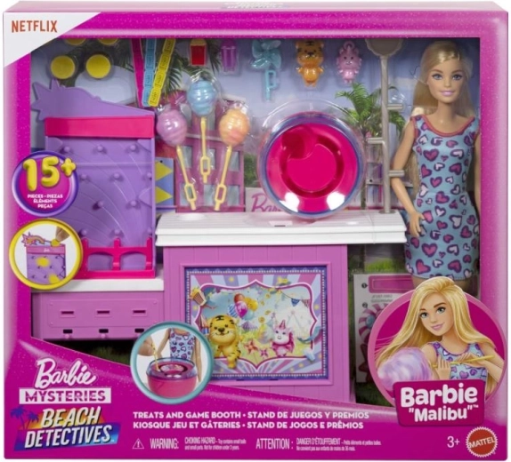 Enthalten sind die Puppe BARBIE „Malibu“ in einem süßen Herzchenkleid, ein realistischer Zuckerwatte-Stand mit Maschine, ein Spielkiosk mit Gewinnen sowie eine umfangreiche Zubehör-Auswahl – von Tickets und Marken über kleine „Plüschtiere“ bis hin zu süßen Leckereien. Ein ideales Geschenk für kleine Geschichtenerzähler, die kräftige Farben, detailreiche Accessoires und leicht verständliche Spielmechaniken lieben.