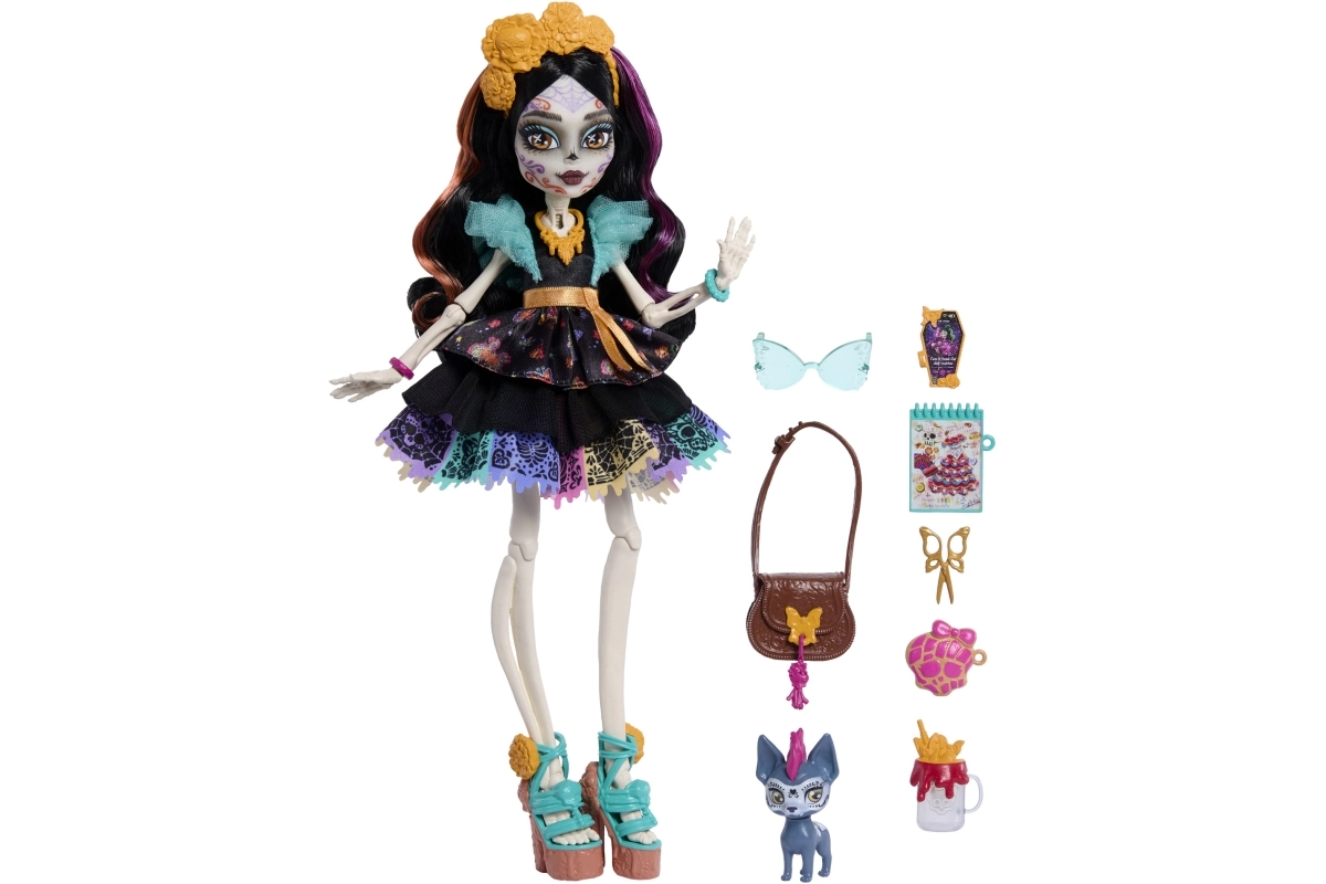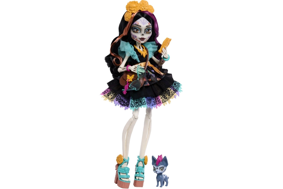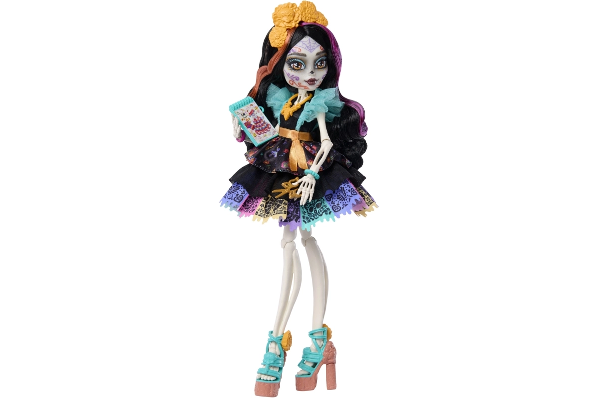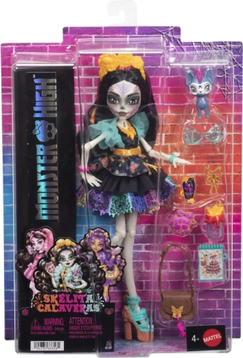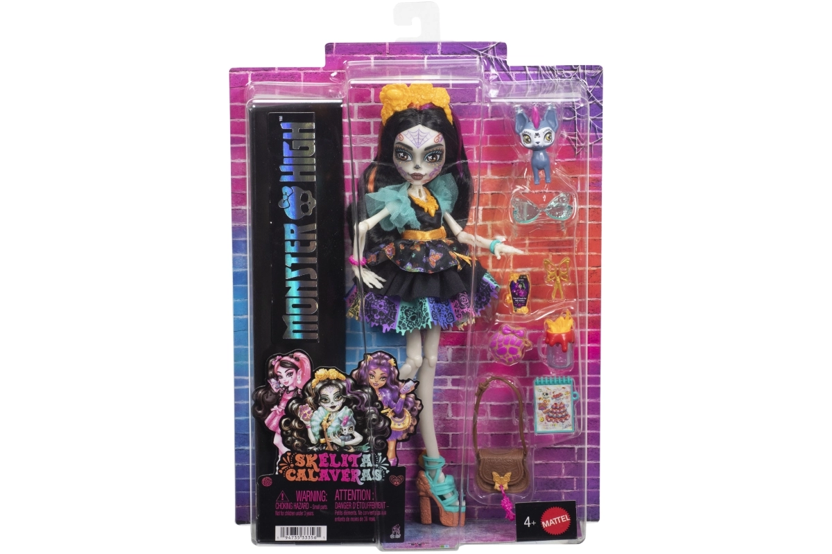 Skelita Calaveras bringt in die Welt von Monster High einen einzigartigen Look, der vom Tag der Toten inspiriert ist. Dank markantem Make-up, detailreich gestalteter Kleidung und vielen farbenfrohen Accessoires genießen Kinder stundenlangen, fantasievollen Spielspaß. Bewegliche Gelenke ermöglichen einfaches Posen und das Kreieren eigener Modeszenen.