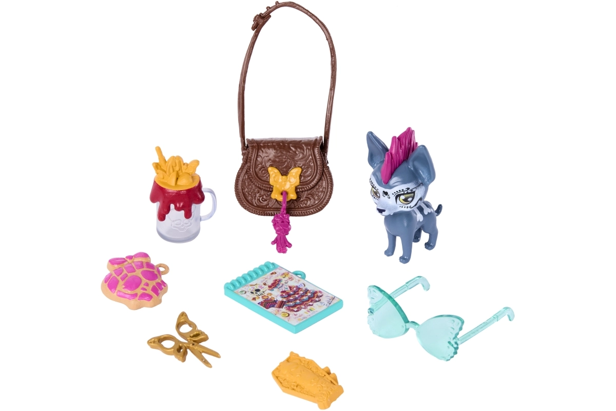 Zum Set gehören das niedliche Haustier Candelita und sechs thematische Accessoires – zum Beispiel eine Handtasche, Sonnenbrille, ein Notizbuch oder ein Getränk. Damit können Kinder ihre Fantasie entfalten, Outfits kombinieren und Geschichten aus den Fluren von MONSTER HIGH erschaffen.