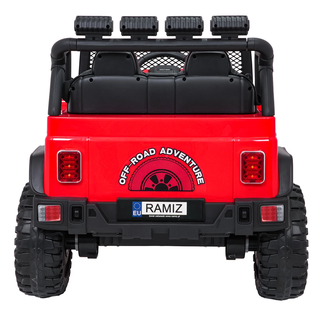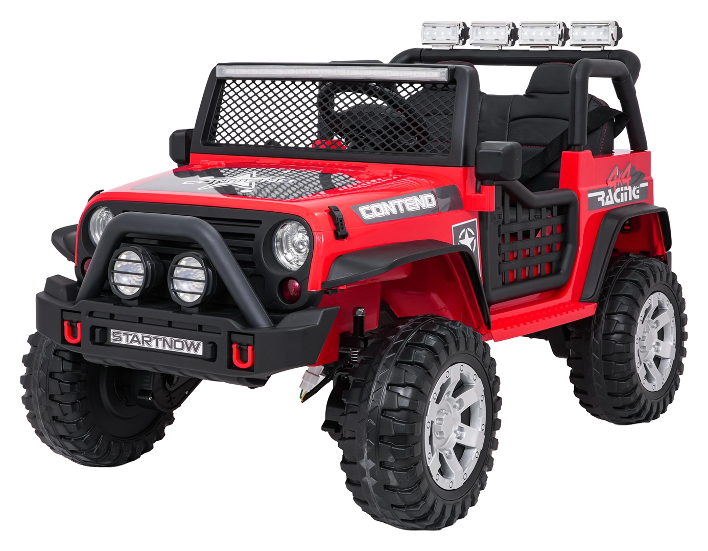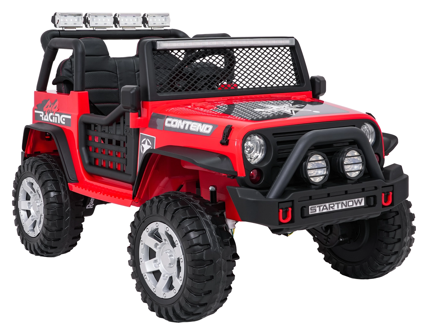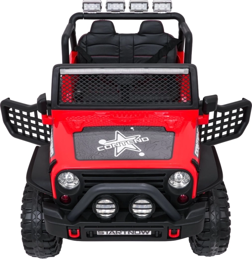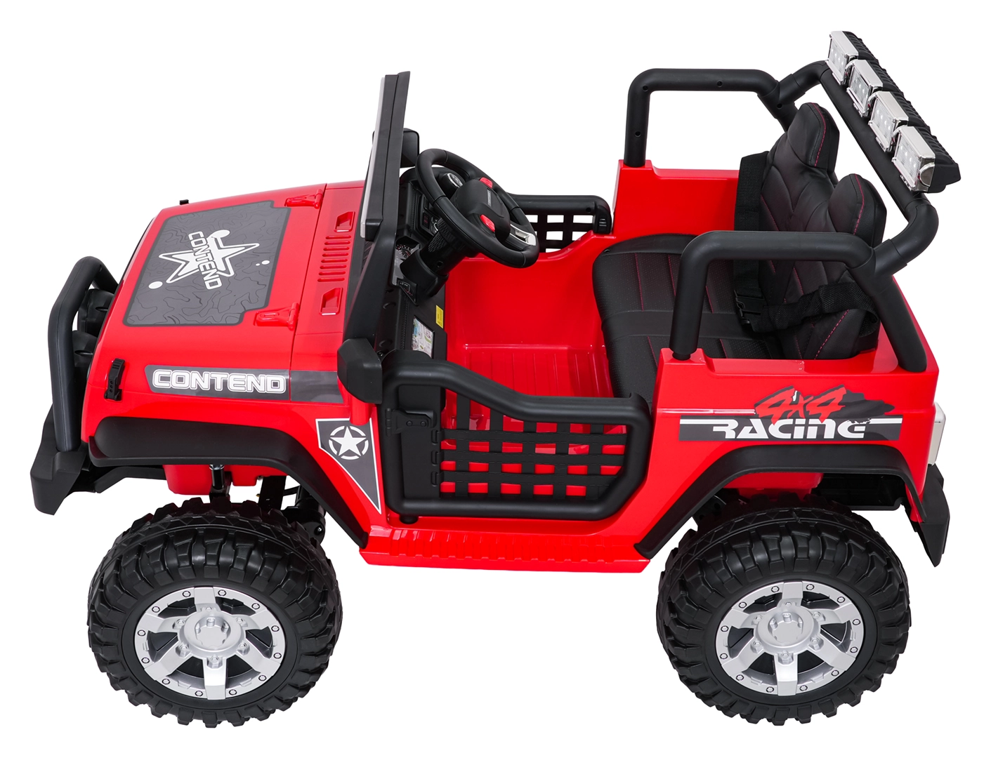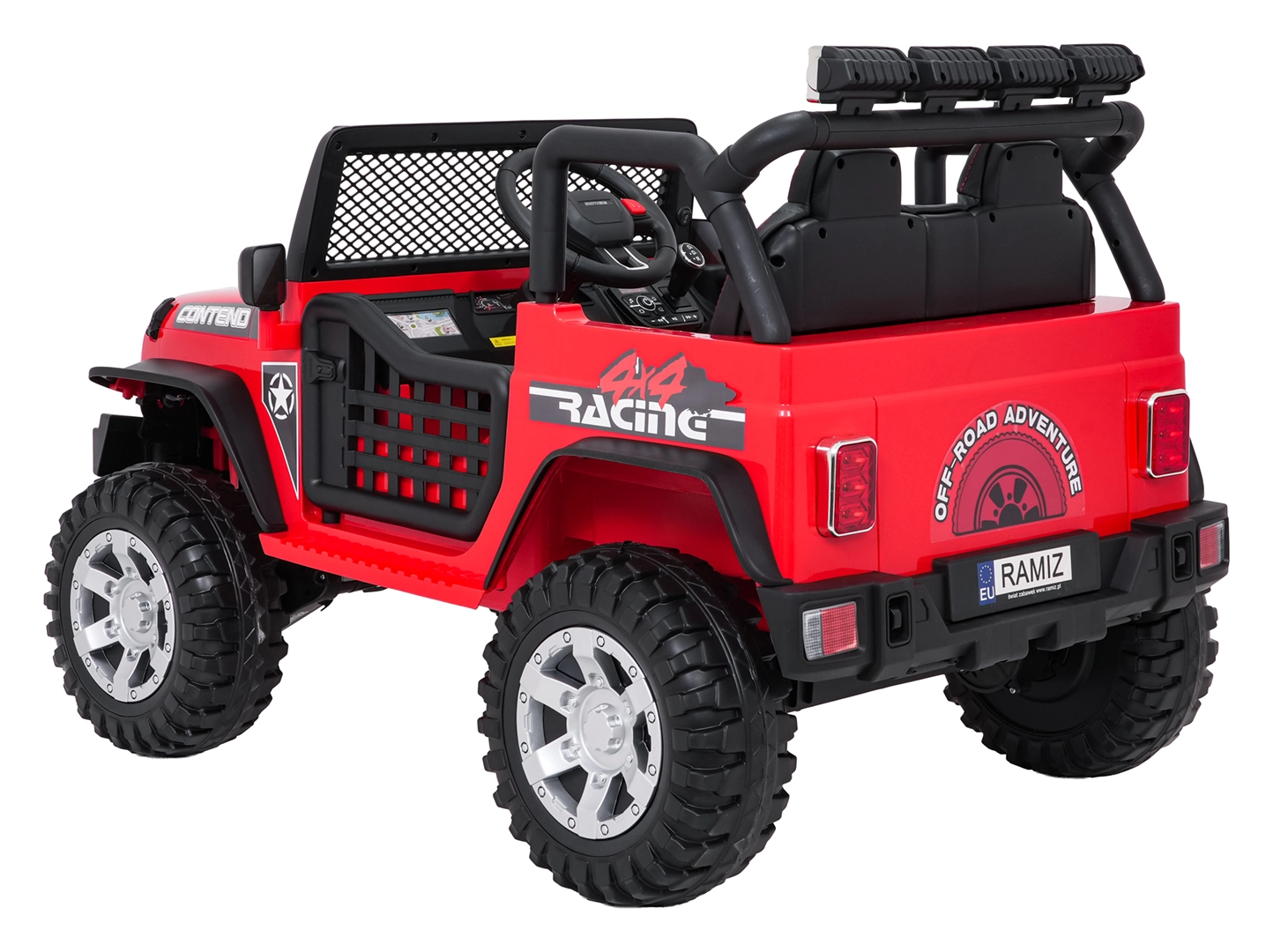Dieser robuste Kinder-Jeep BEAST 4x4 in Rot ist für kleine Abenteurer gemacht. Vier 45-W-Motoren sorgen auch abseits befestigter Wege für genügend Kraft, während der Doppelakku 2× 12 V 7 Ah Ausflüge maximal verlängert. Weiche EVA-Räder, Federung vorn und hinten sowie sanftes Anfahren gewährleisten eine komfortable und sichere Fahrt.