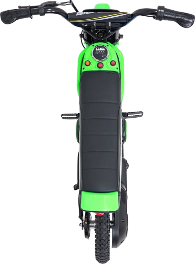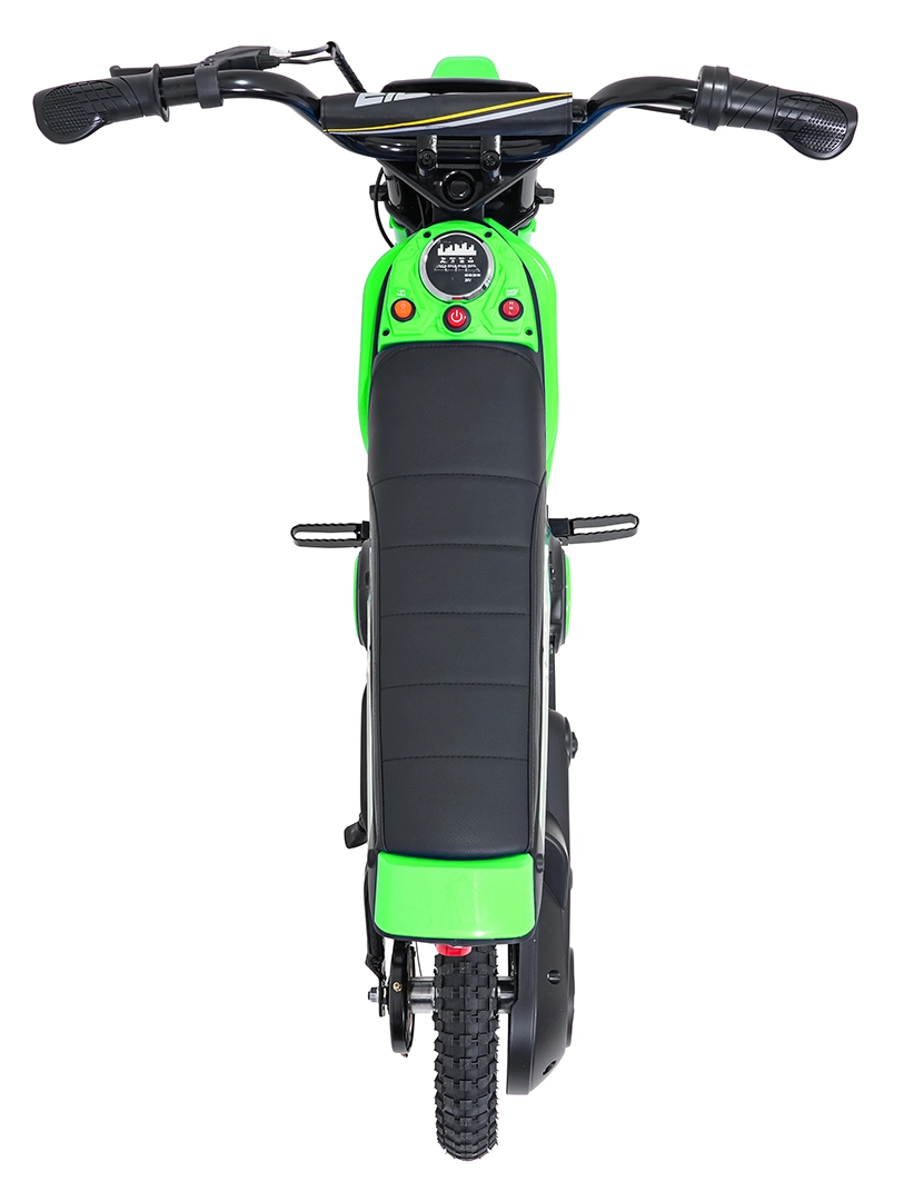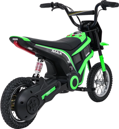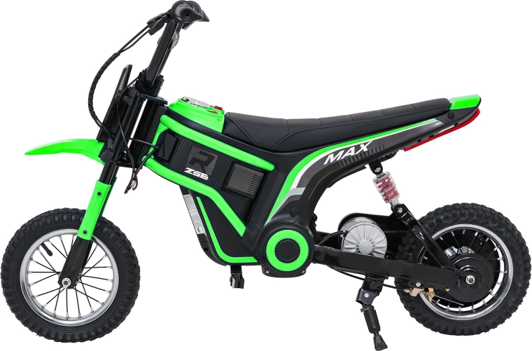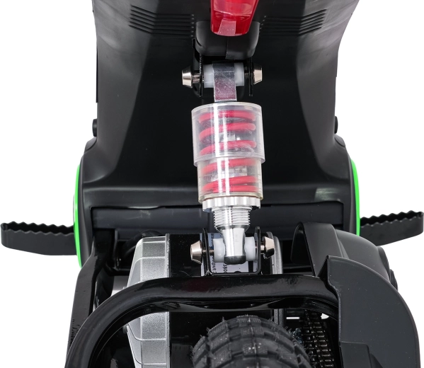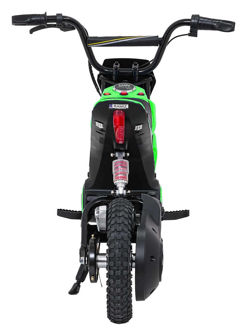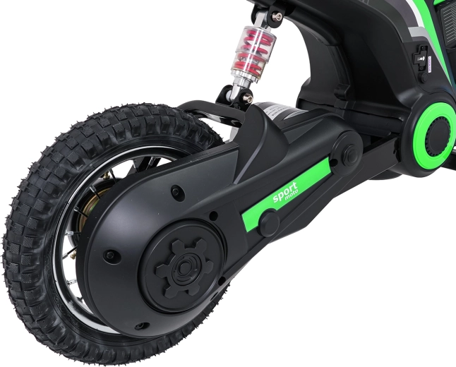 Das elektrische Kinder-Crossbike RZ56 Max in Grün ist ideal für junge Fahrerinnen und Fahrer, die echtes Offroad-Feeling erleben möchten. Dank des leistungsstarken 350W-Motors mit Kettenantrieb und des 24V-Batteriesystems bietet es kräftigen Anzug, sanftes Anfahren und konstante Leistung. Der hintere Stoßdämpfer und die luftgefüllten 30×5 cm Räder garantieren Komfort und Sicherheit auf verschiedenen Untergründen.