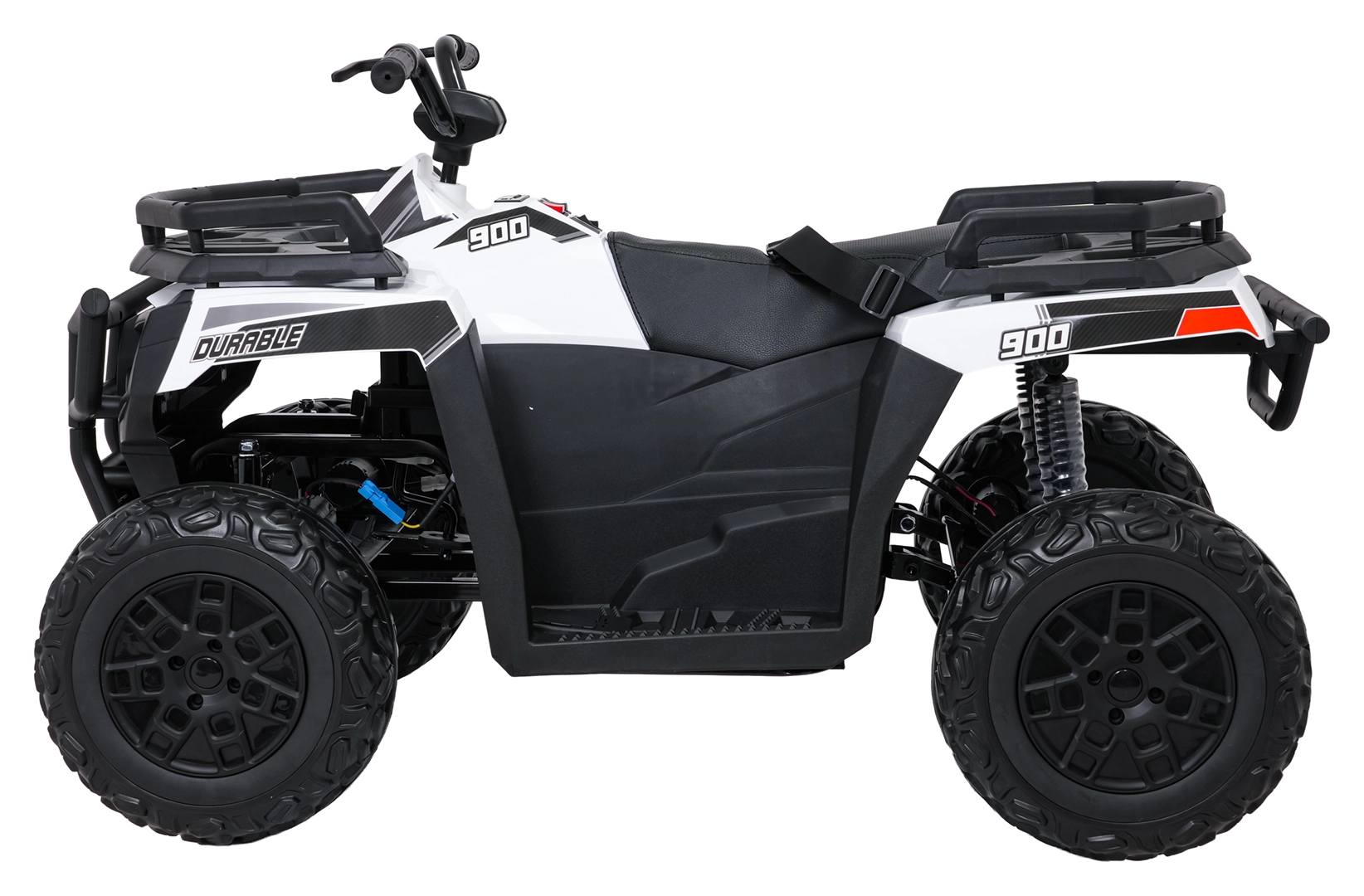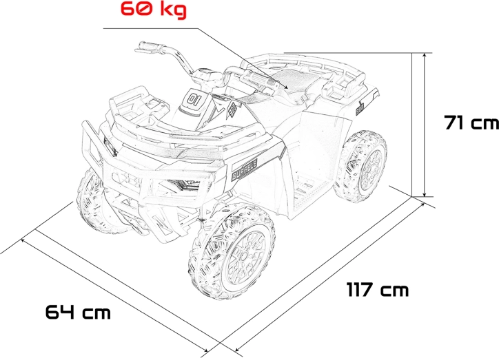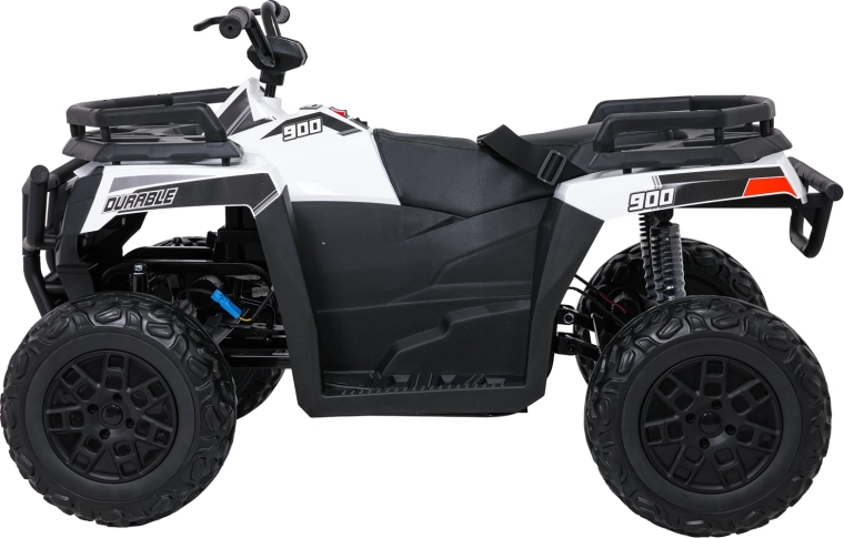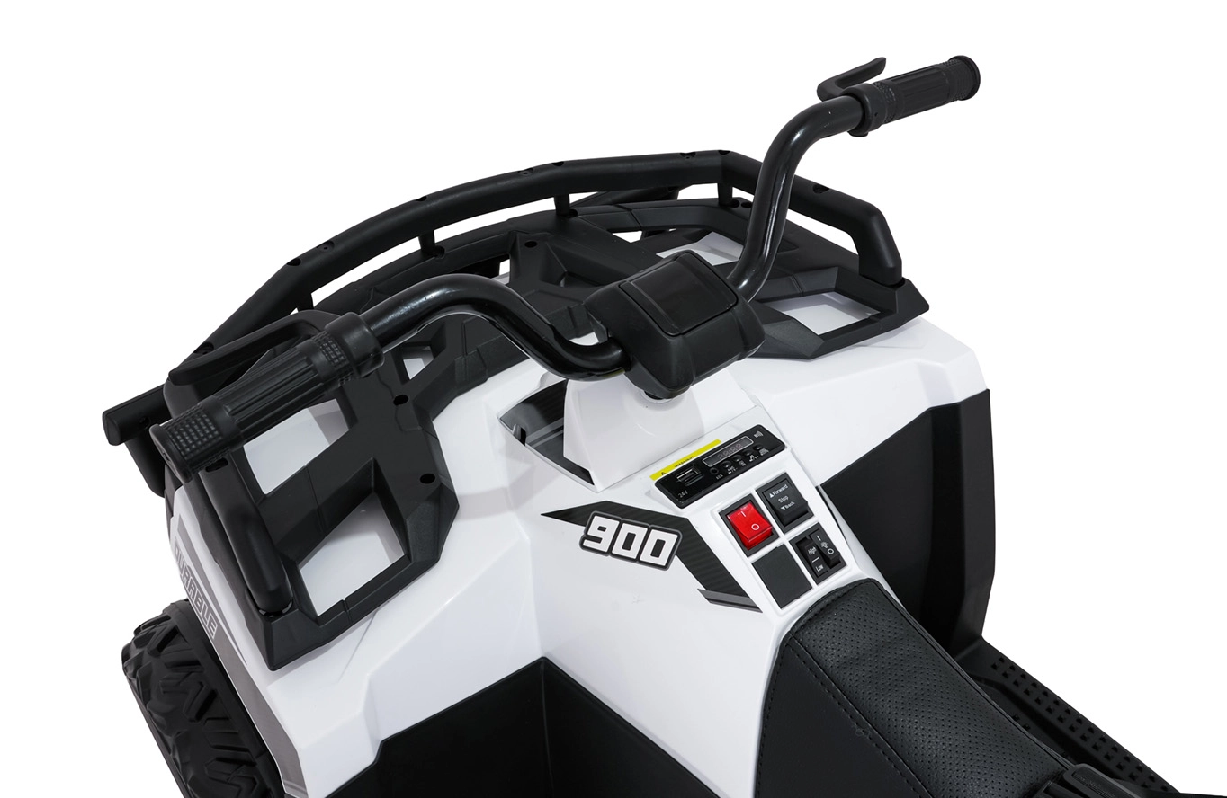 Kraftvoller und stylischer Begleiter für kleine Abenteurer – das elektrische Kinder-Quad WOLF 4x4 in Weiß vereint hohe Leistung und Sicherheit. Vier 200-W-Motoren und ein 24 V 10 Ah Akku sorgen für eine gleichmäßige, stabile Fahrt, während die großen EVA-Räder mit 16 cm Bodenfreiheit Unebenheiten mühelos meistern. Für zusätzlichen Komfort ist das Fahrzeug mit hinterer Federung und sanftem Start ausgestattet.
