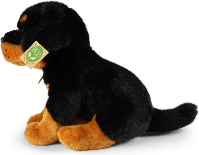 Dieser sitzende Plüschhund der Rasse Rottweiler besticht durch naturgetreue Details, ein weiches Fell und sorgfältige Handarbeit, wodurch er fast lebensecht wirkt. Ideal als kuscheliger Freund fürs Bettchen, fürs Kinderzimmer oder als liebevolle Dekoration.
