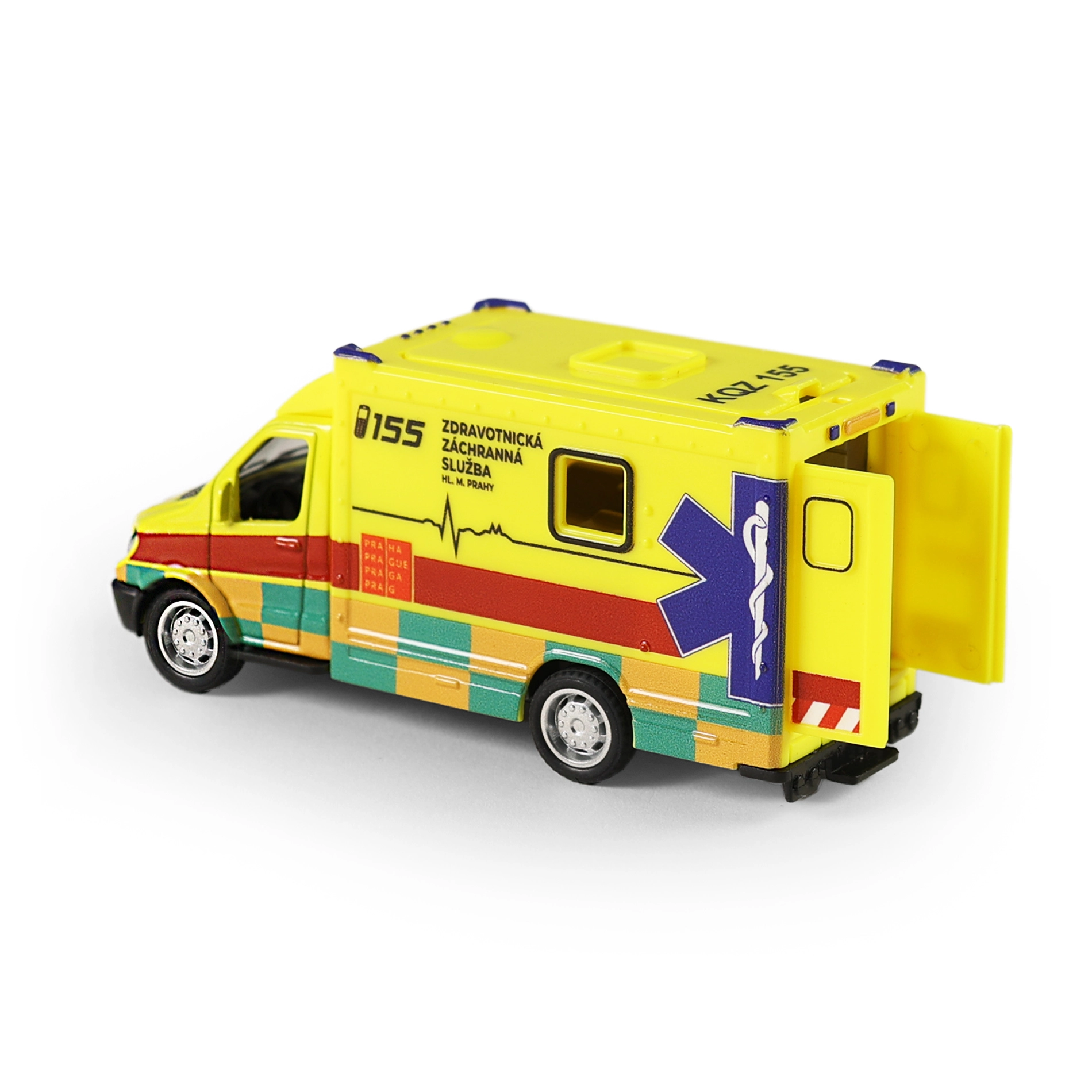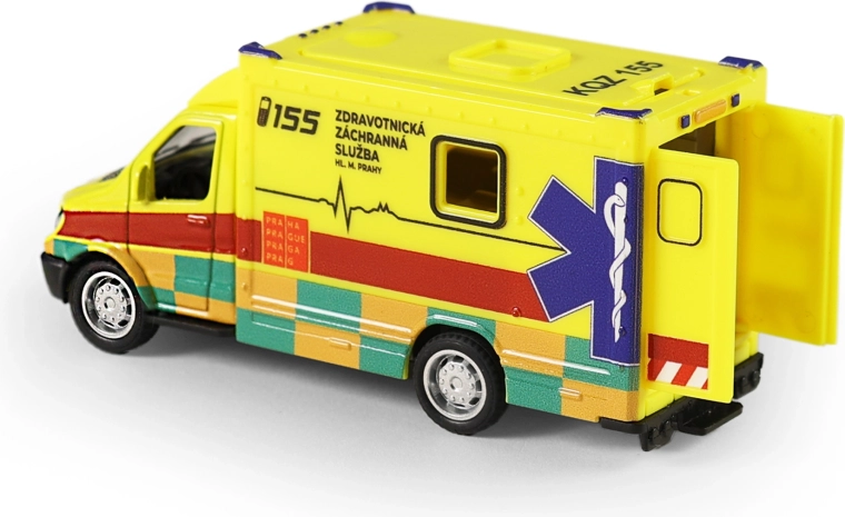 Mit dem Rückzugantrieb fährt der Krankenwagen mühelos los – ideal für schnelle Einsätze im Kinderzimmer. Das offizielle Design, inspiriert vom Rettungsdienst der Hauptstadt Prag, verleiht dem Spielzeug ein originalgetreues Aussehen.