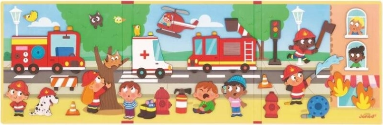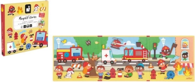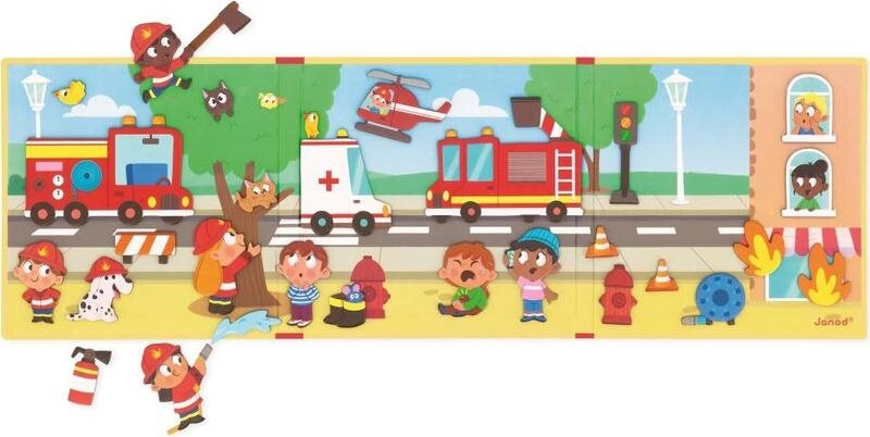 Das magnetische Buch Feuerwehr von JANOD bringt Kindern jede Menge Spaß und Lernen in einem. Der große magnetische Hintergrund und 30 thematische Magnete mit Motiven von Feuerwehrleuten und Dekorationen ermöglichen es Kindern, unendliche Geschichten zu legen, die Vorstellungskraft und die Feinmotorik zu fördern.