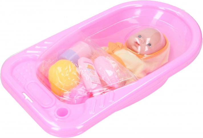 Das Set Baby mit Badewanne ist ideal für kleine Betreuerinnen. Das Set enthält ein Baby mit einer Größe von 24 cm und eine 40 cm lange Badewanne, perfekt für ein spaßiges Badeerlebnis.