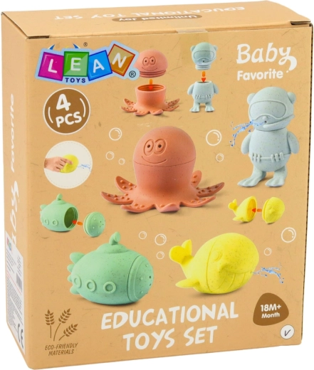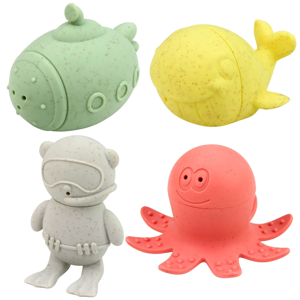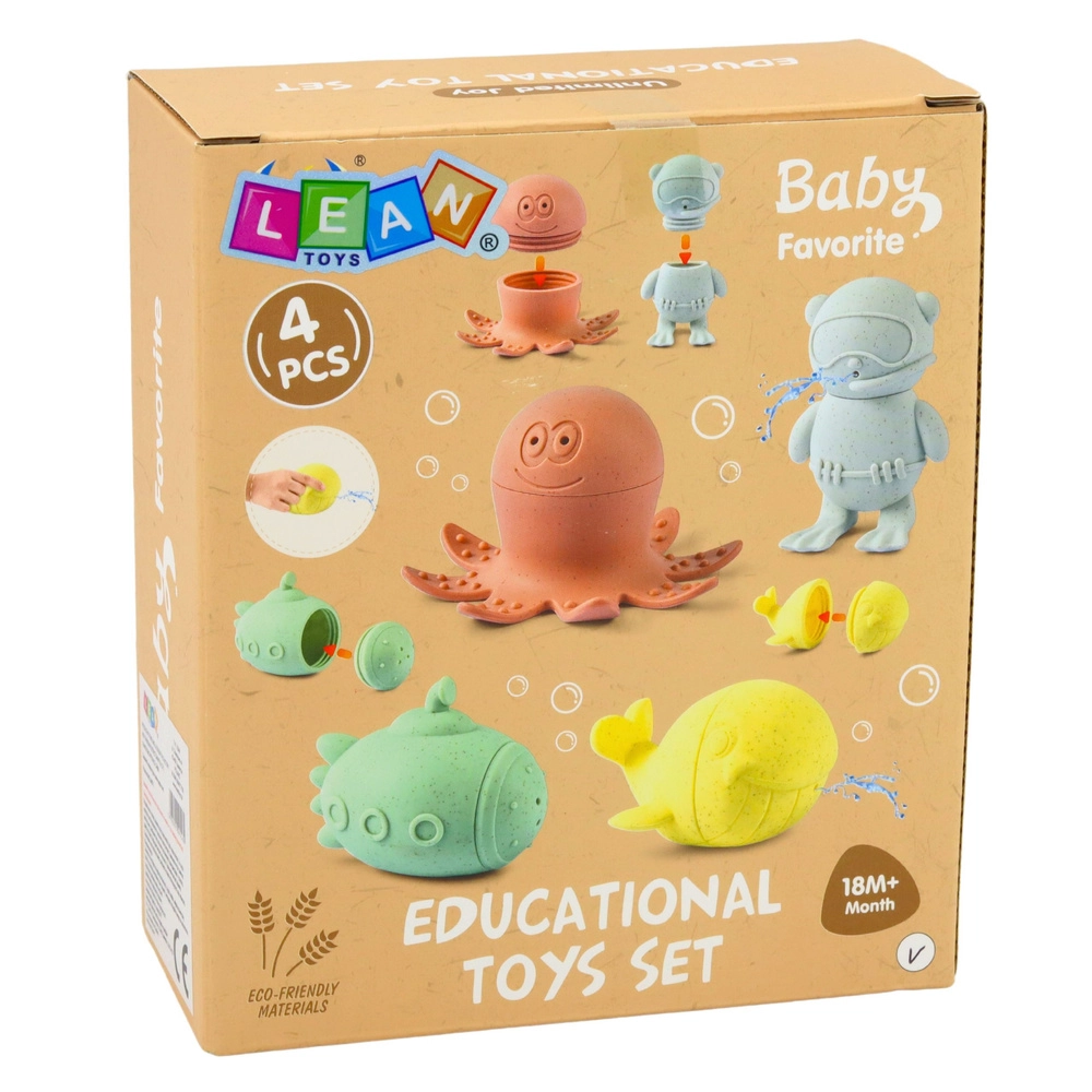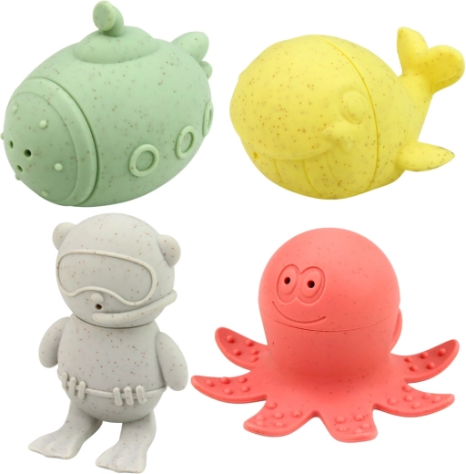Die pastellfarbenen Badespielzeuge verwandeln jedes Bad in einen spielerischen Tauchgang. Dank des weichen, elastischen Materials liegen die Figuren gut in der Hand, sind sicher und fühlen sich angenehm an. Nach dem Befüllen und Zusammendrücken spritzen sie durch kleine Öffnungen Wasser, was Kinder zu aktivem Spiel und Entdecken motiviert.