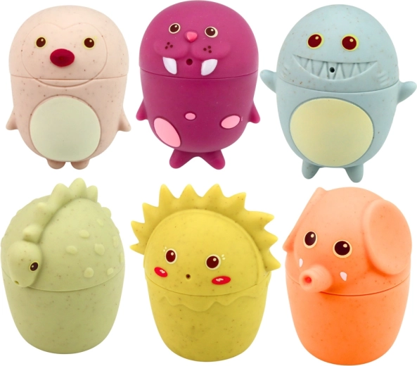 Jedes Tier lässt sich in zwei Teile trennen – Kinder üben das Zusammensetzen, die Präzision der Bewegungen und das Entdecken. Mit Wasser gefüllt und zusammengedrückt spritzt das Wasser durch Öffnungen und macht aus der täglichen Hygiene ein fröhliches Spiel. Die Spielzeuge eignen sich auch für trockenes Spielen außerhalb des Wassers.