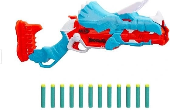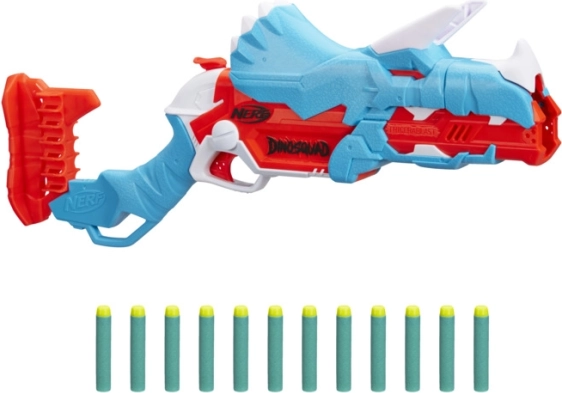Der Blaster ist im Stil des beliebten Dinosauriers Triceratops gehalten. Sein einzigartiges Design bringt Spaß in die Welt der Dinosaurier, den Kinder lieben.