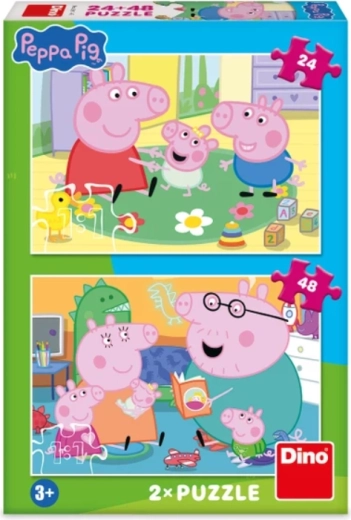 Entdecken Sie die Freude am Puzzeln mit Kinderpuzzles mit Motiven von Peppa Wutz. Die Packung enthält 2 Bilder mit 24 und 48 Teilen und einem Motivmaß von 26,4 × 18,1 cm – ideal für Kinder ab 3 Jahren.