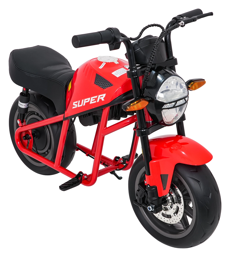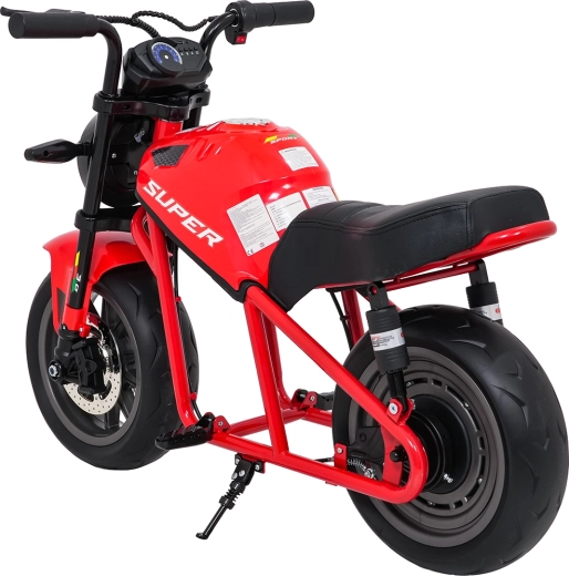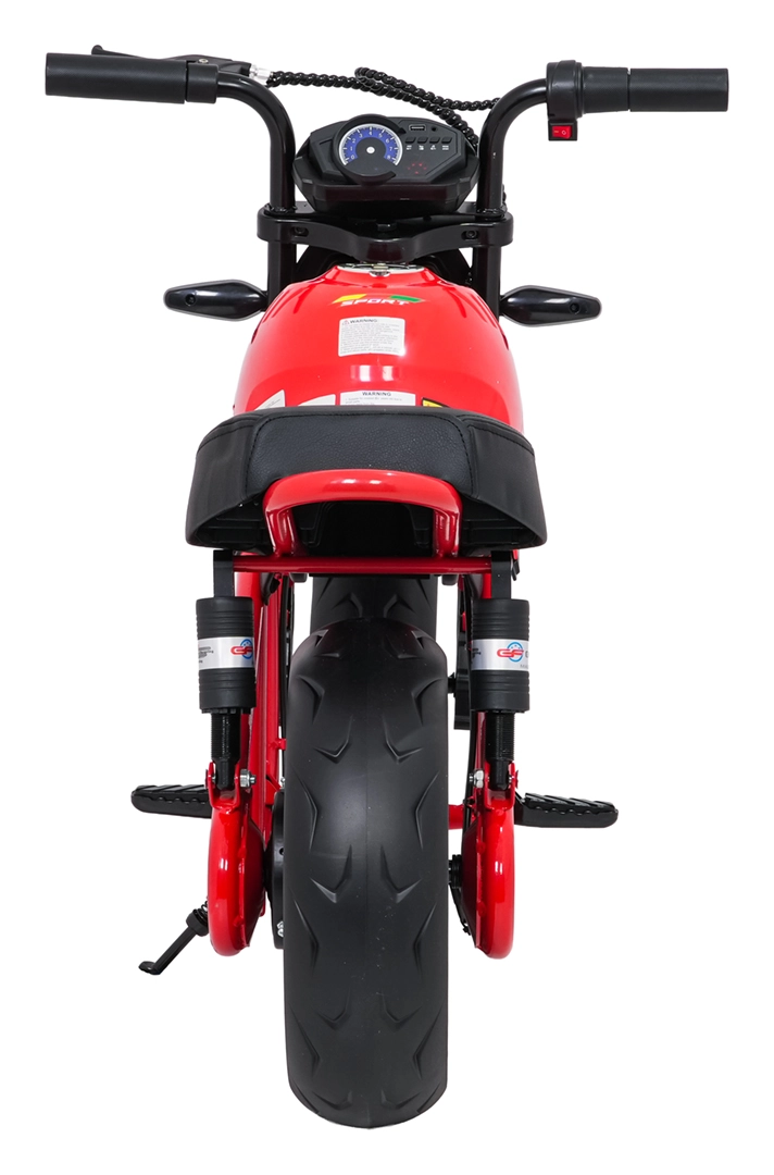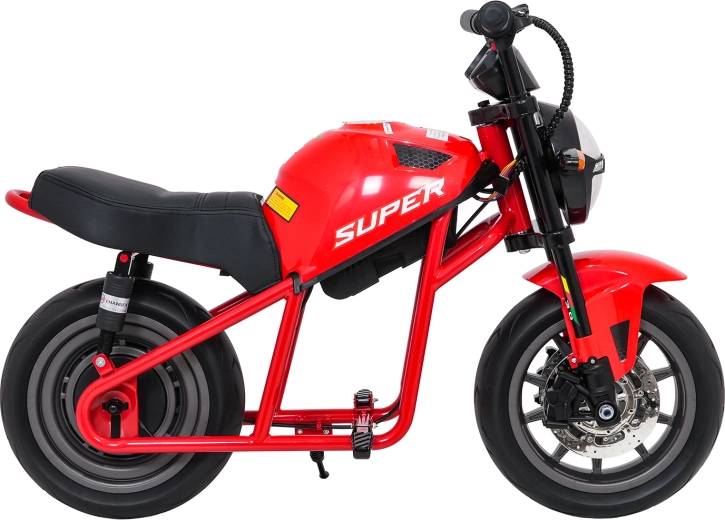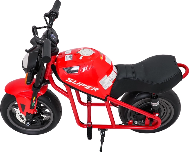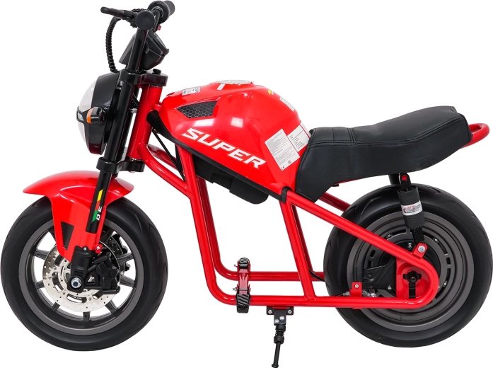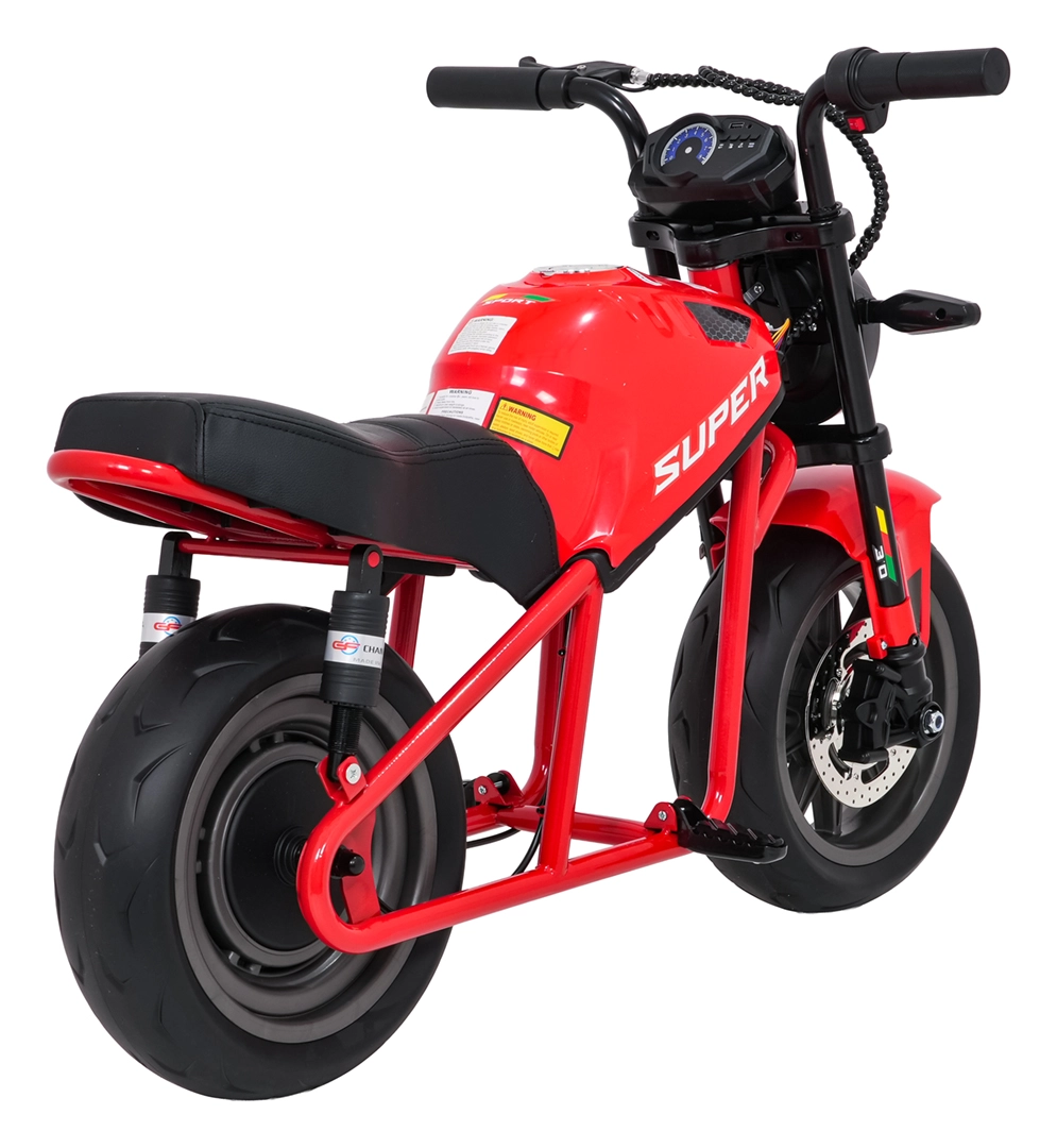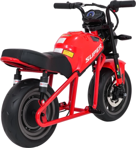 Entdecken Sie Fahrspaß auf zwei Rädern mit dem elektrischen Kinder-Motorrad SUPERMOTO. Der starke 300W-Antrieb und die 24V 9Ah-Batterie sorgen für sanftes Anfahren und ausreichend Leistung für die Vorwärtsfahrt. Breite EVA-Reifen 33×12 cm bieten hervorragende Stabilität und Komfort, während verstellbare doppelte hintere Stoßdämpfer Unebenheiten schlucken.