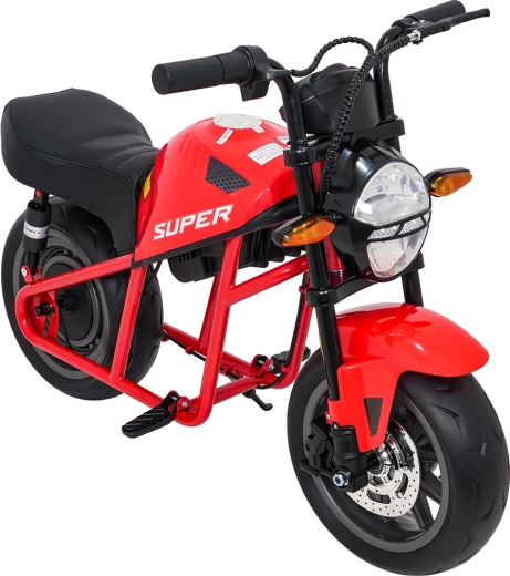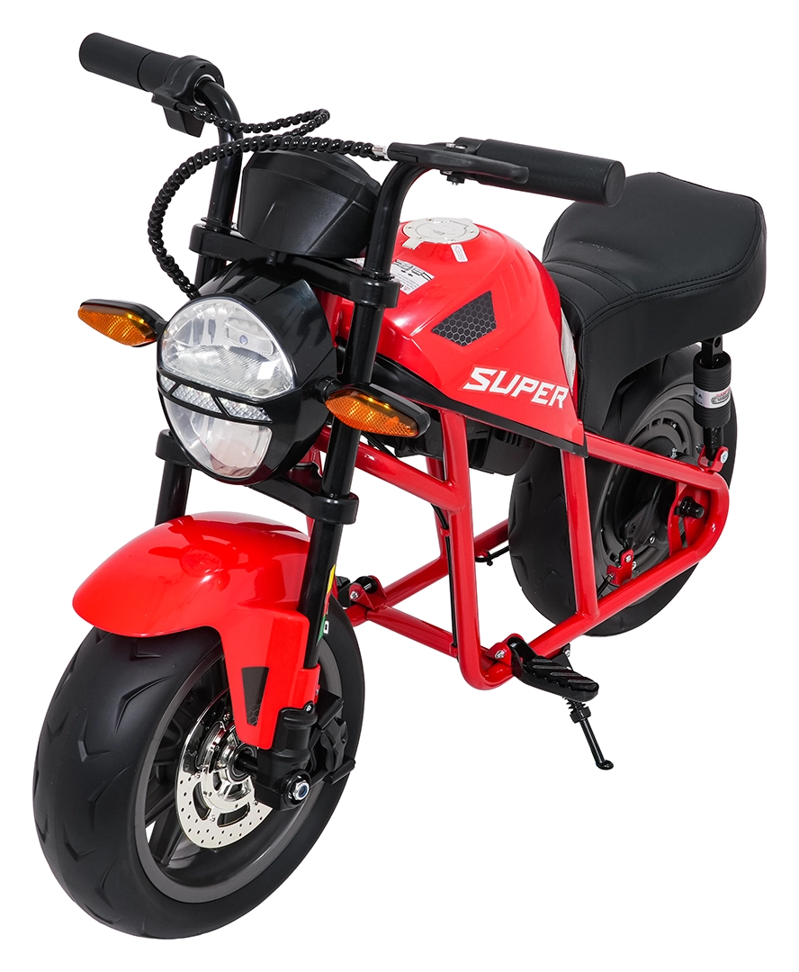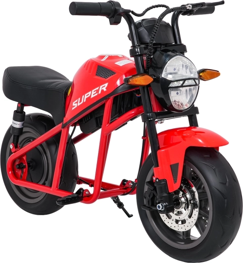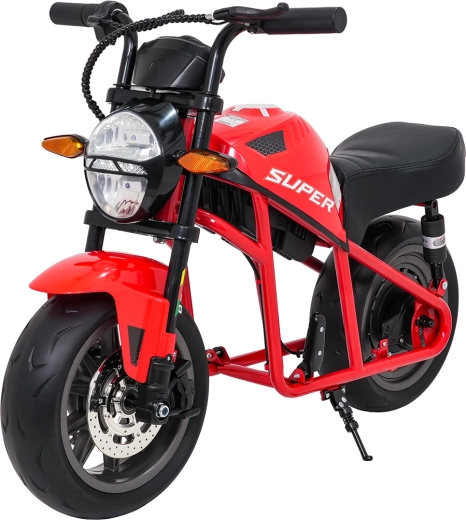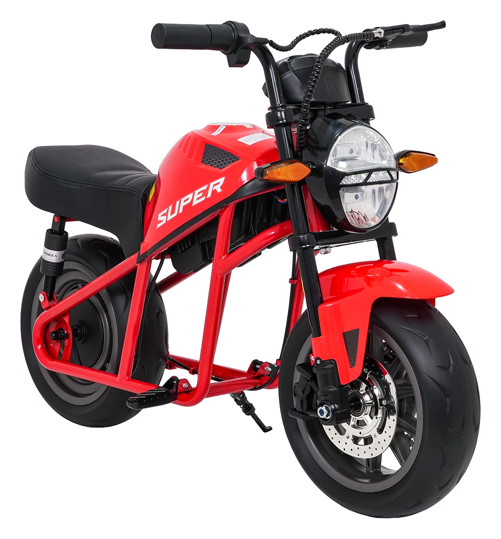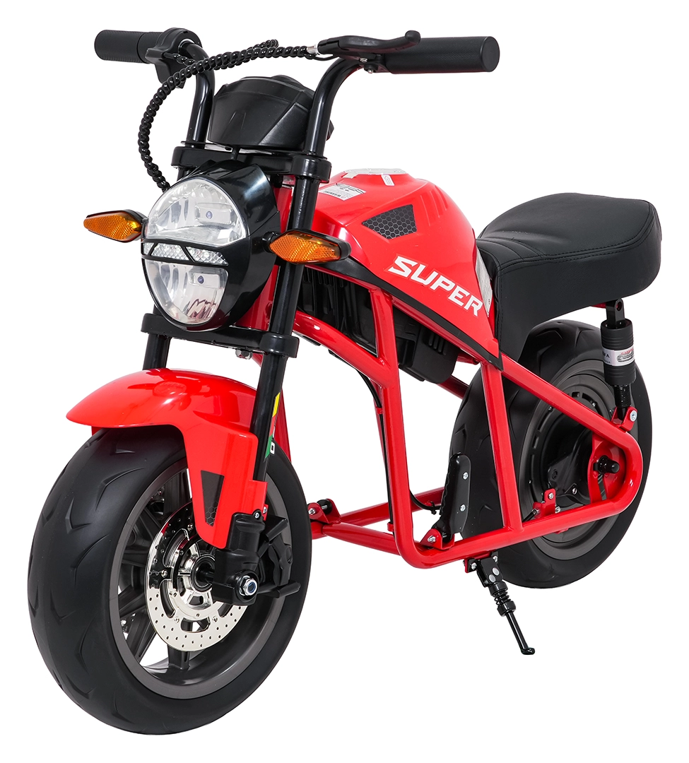Entdecken Sie Fahrspaß auf zwei Rädern mit dem elektrischen Kinder-Motorrad SUPERMOTO. Der starke 300W-Antrieb und die 24V 9Ah-Batterie sorgen für sanftes Anfahren und ausreichend Leistung für die Vorwärtsfahrt. Breite EVA-Reifen 33×12 cm bieten hervorragende Stabilität und Komfort, während verstellbare doppelte hintere Stoßdämpfer Unebenheiten schlucken.