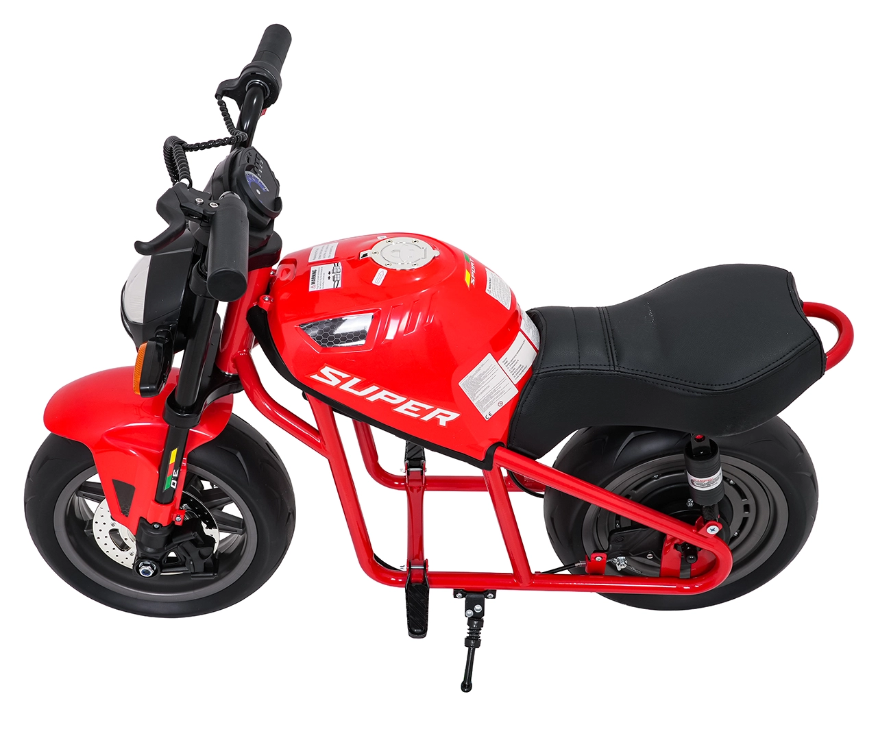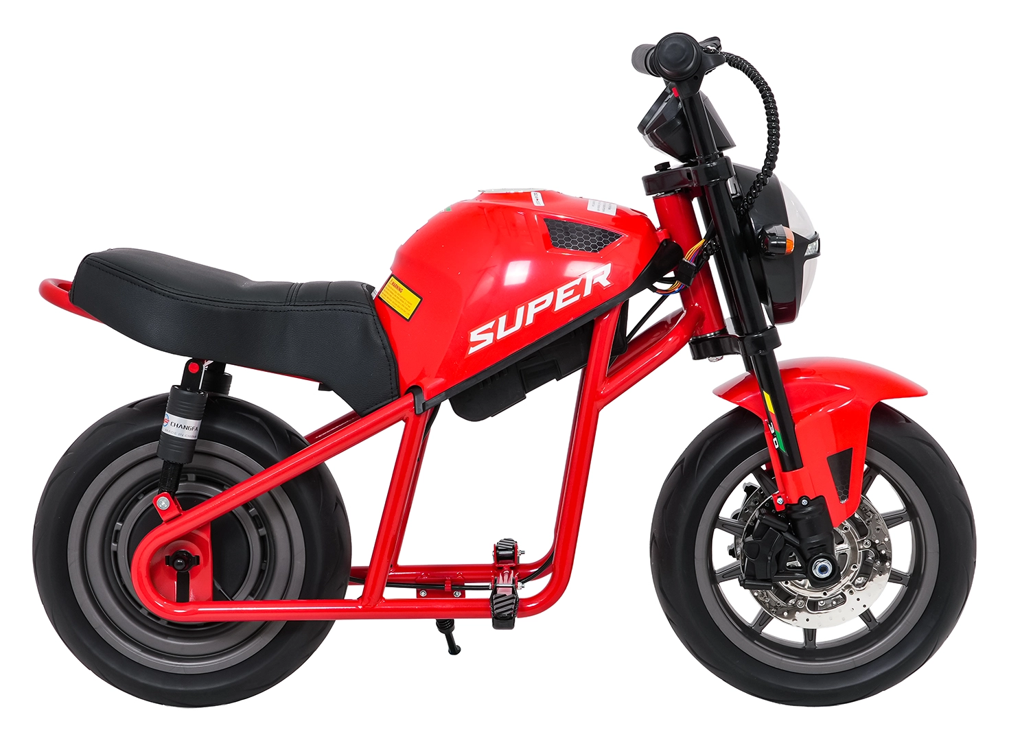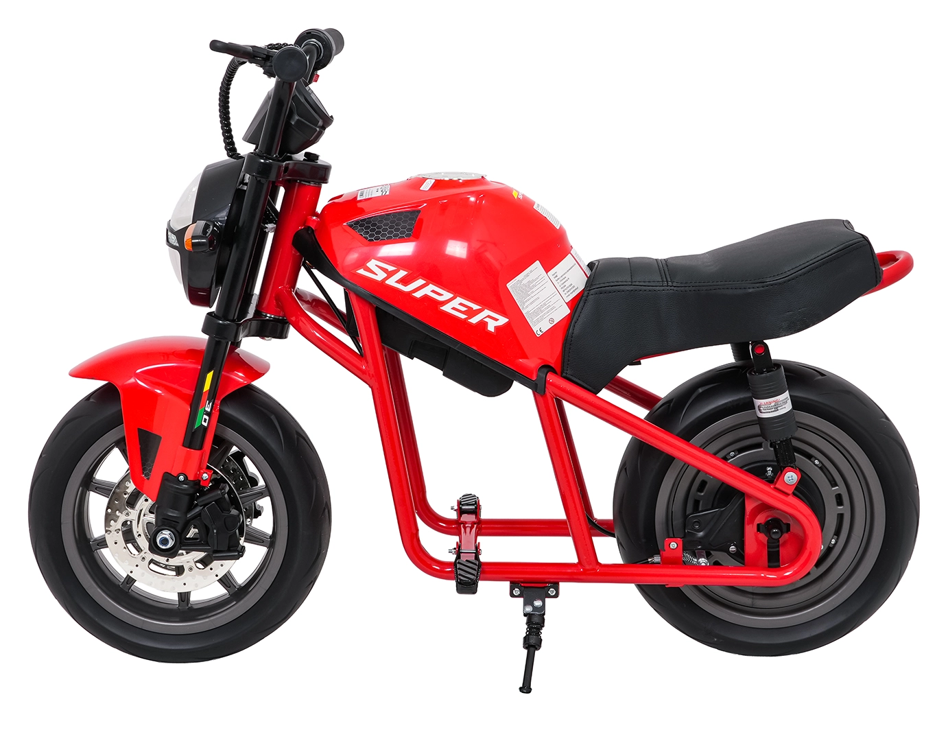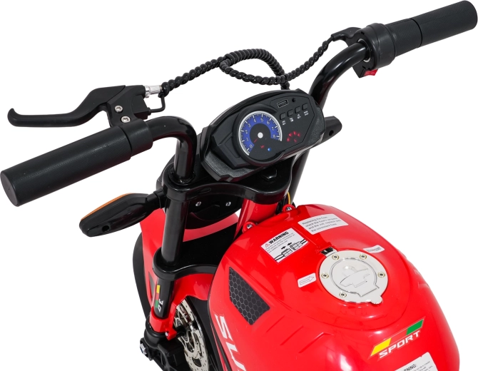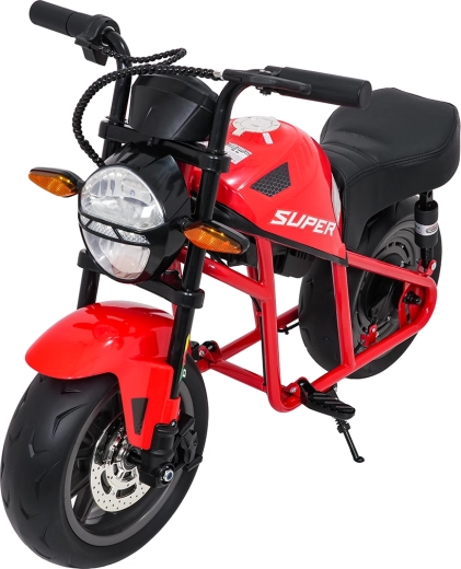 Entdecken Sie Fahrspaß auf zwei Rädern mit dem elektrischen Kinder-Motorrad SUPERMOTO. Der starke 300W-Antrieb und die 24V 9Ah-Batterie sorgen für sanftes Anfahren und ausreichend Leistung für die Vorwärtsfahrt. Breite EVA-Reifen 33×12 cm bieten hervorragende Stabilität und Komfort, während verstellbare doppelte hintere Stoßdämpfer Unebenheiten schlucken.