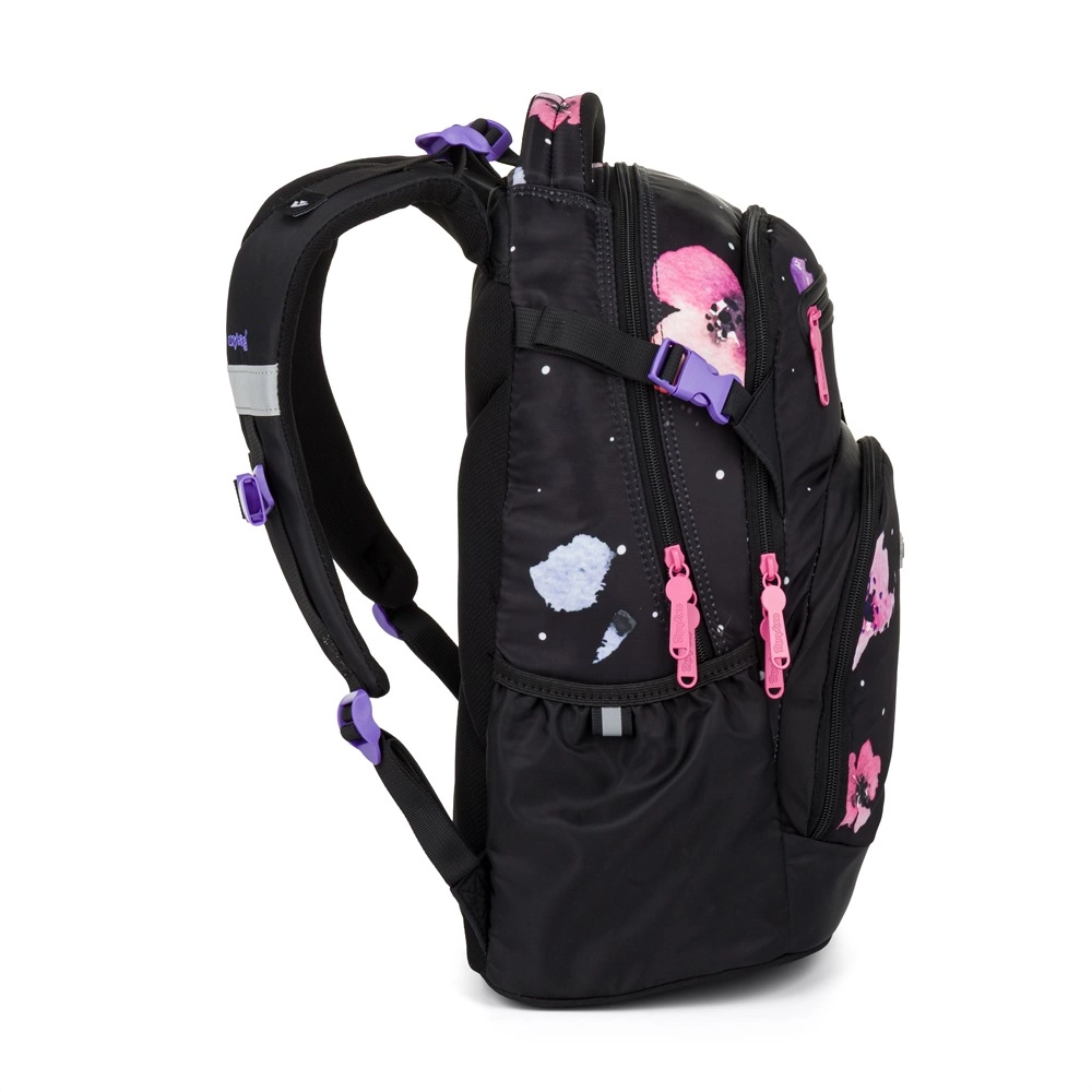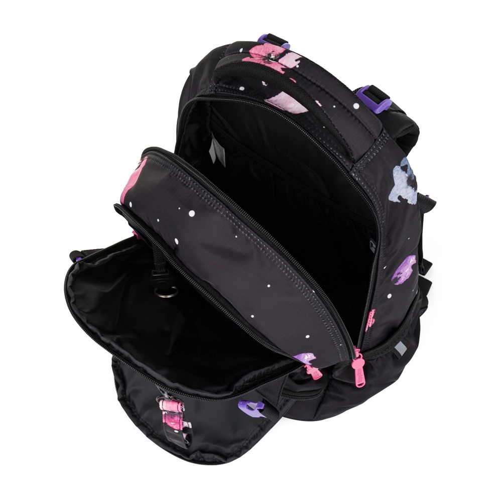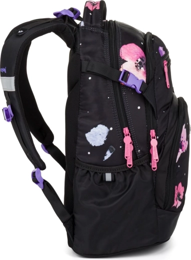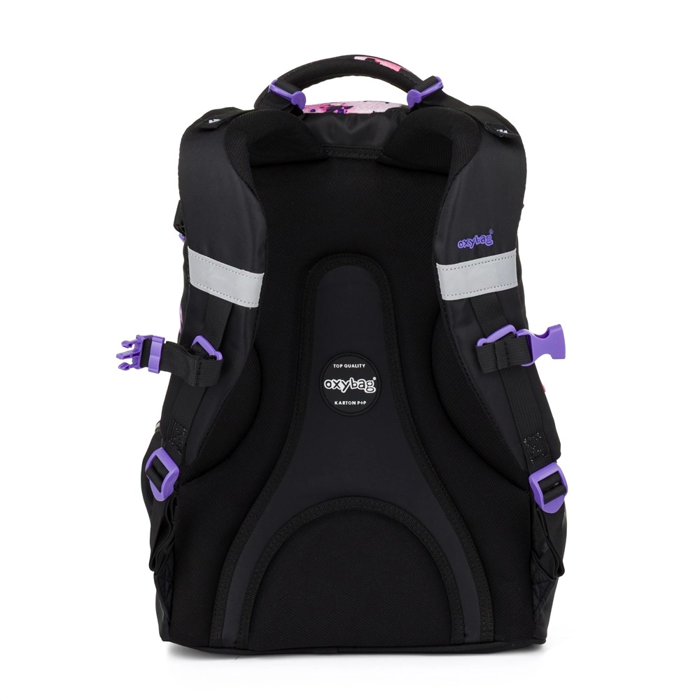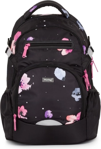Der Schulrucksack OXY Ombre Flowers ist für den bequemen Alltagseinsatz ab der 3. Klasse konzipiert. Dank des ergonomischen Rückenpanels (Länge 43 cm) und der weich gepolsterten Schultergurte passt er sich hervorragend dem Kinderrücken an. Der verstellbare Brustgurt hält die Träger an Ort und Stelle, während der feste, stabile Boden ein Umkippen verhindert und den Inhalt schützt.