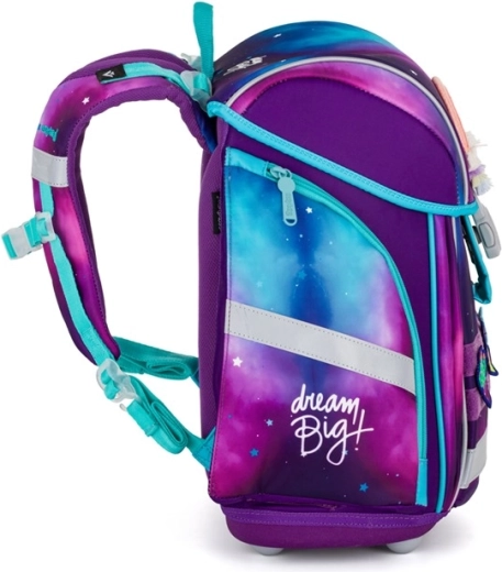 Der Schulrucksack Premium Light Dream Big ist für komfortables tägliches Tragen und eine gesunde Körperhaltung konzipiert. Die leichte Konstruktion (970 g) und der ergonomisch geformte Rücken mit atmungsaktiver Polsterung bieten Komfort selbst bei voller Beladung bis 8 kg. Dank der smarten Innenaufteilung mit Organizer, Fronttasche und Seitentaschen haben Kinder alle Schulsachen stets übersichtlich zur Hand.