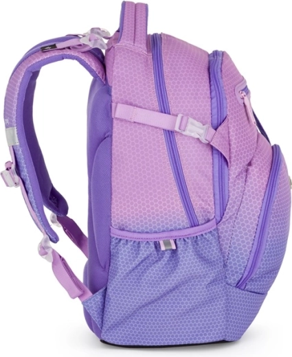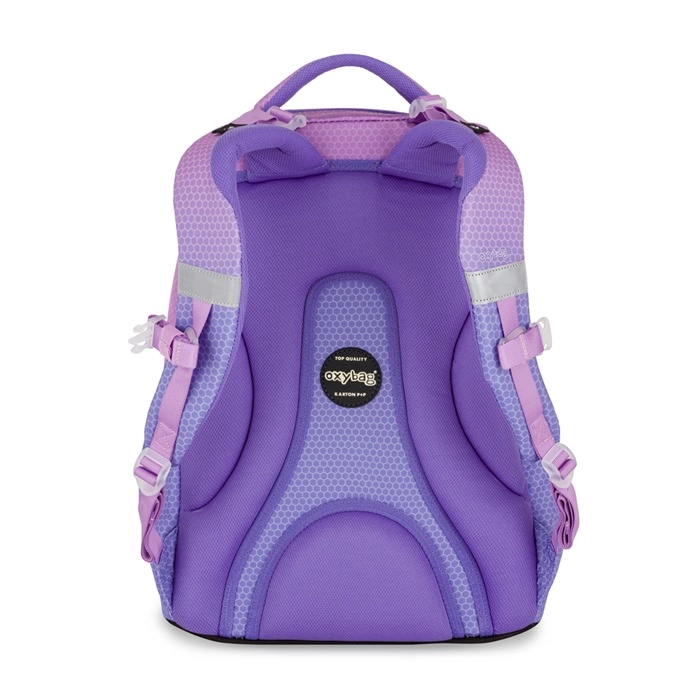 Der OXY Ombre in Rosa ist ein durchdachter Schulrucksack mit Fokus auf gesundes Tragen und übersichtliche Organisation. Ein ergonomisch geformtes Rückenteil, weiche, gepolsterte Gurte und ein verstellbarer Brustgurt sorgen für Komfort während des gesamten Schultages. Die stabile Konstruktion mit festem Boden verhindert das Umkippen und schützt den Inhalt.