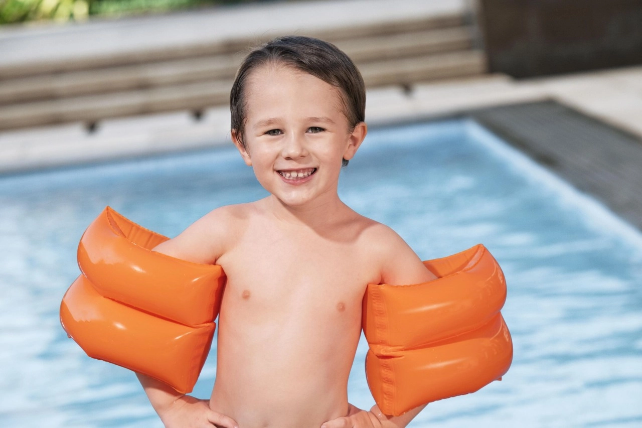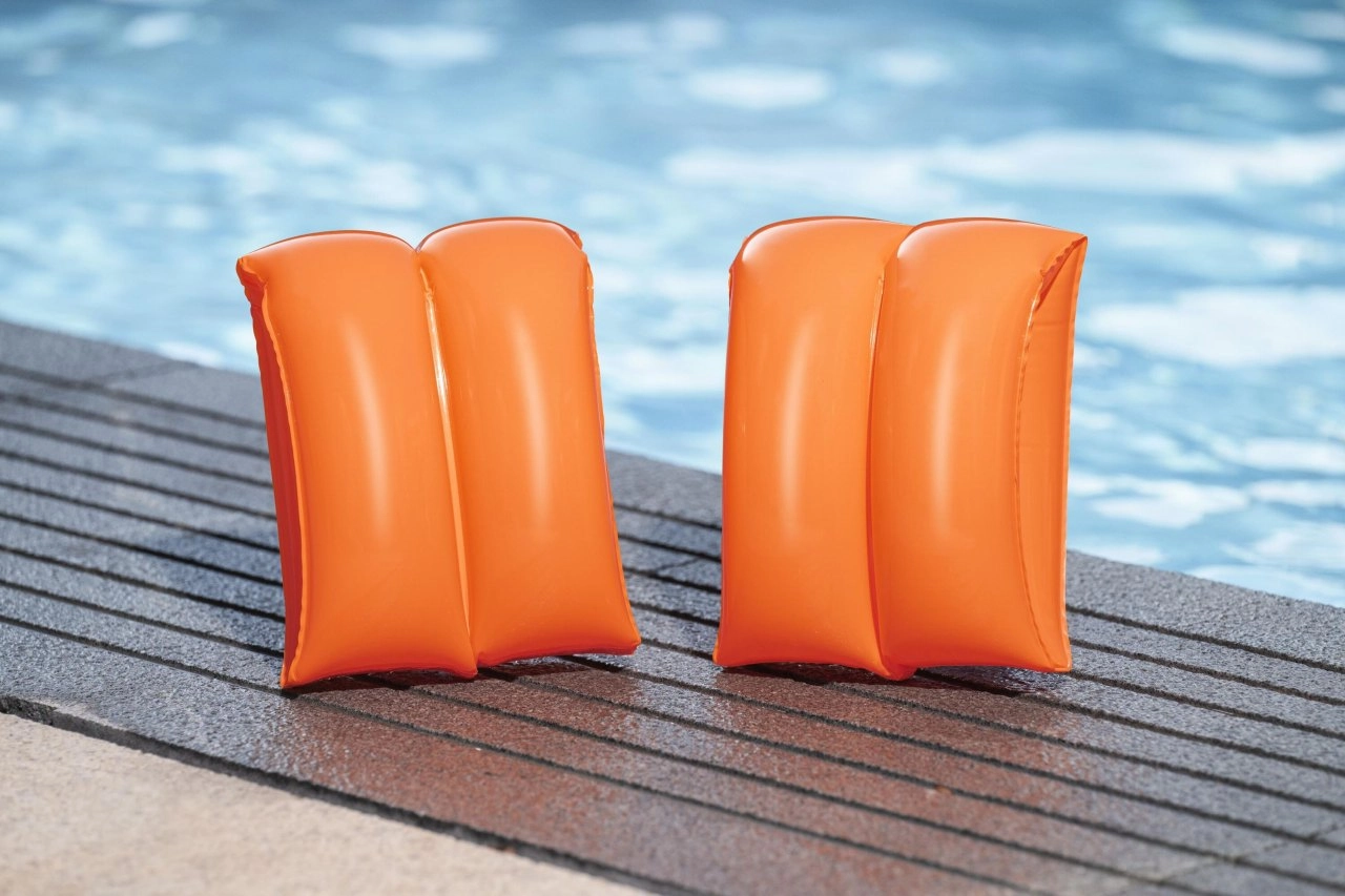 Unterstützen Sie die ersten Schritte im Wasser mit den Kinder-Schwimmflügeln von BESTWAY. Die leuchtende orange Farbe sorgt für hervorragende Sichtbarkeit, während das Design mit zwei Luftkammern Stabilität und Auftrieb erhöht. Ideal für Pool, See und Meer – sie helfen Kindern, beim Erlernen der Schwimmfähigkeiten Selbstvertrauen aufzubauen.