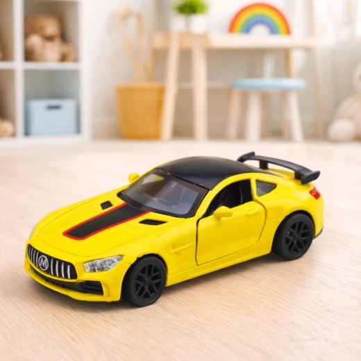 Dieses detailreich ausgearbeitete Sportwagenmodell aus Metall 1:32 kombiniert ein strapazierfähiges Metallchassis mit präzisen Kunststoffteilen. Aggressive Linien der Karosserie, Heckspoiler und kontrastreiche Details unterstreichen den Renncharakter des Modells, das sowohl im Regal als auch in Aktion großartig aussieht.